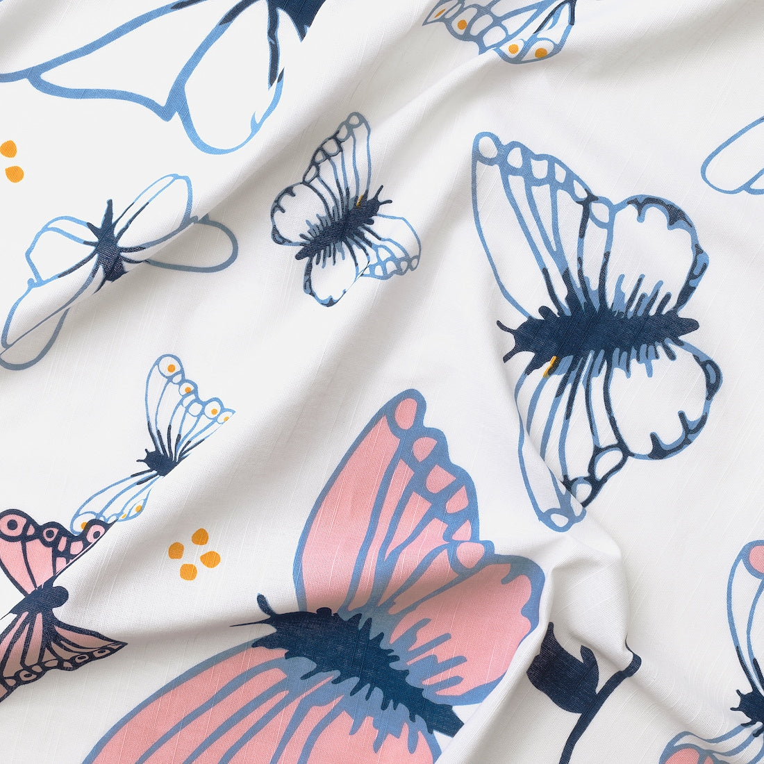 外からの視線を遮りつつ、部屋に明かりを取り込める薄手のカーテンです。持続可能な方法で栽培した綿糸を染めてから布地を織っているので、日光にあたっても色あせしにくいのが特徴です。