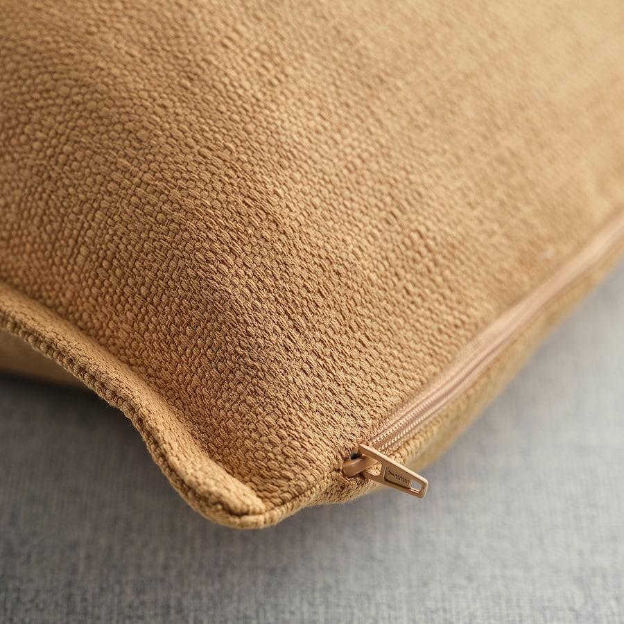 表面に抑えめの光沢とテクスチャーがあり、縁周りのフランジがクッションにスタイリッシュな見た目と安定感をプラスするクッションカバーです。ファスナー付きなので取り外しが簡単で、洗濯機で洗えます。さまざまな色があり、サイズは40×58cmと50×50cmの2種類です。