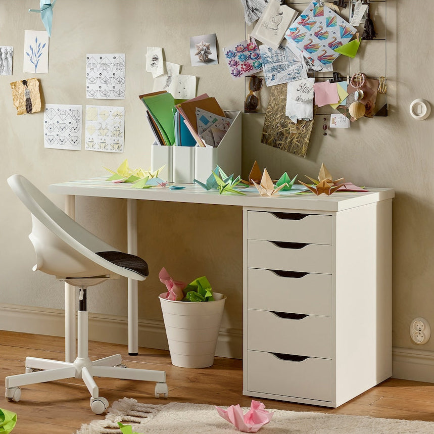 誰からも好かれるすっきりとした外観で、どこから見ても美しい引き出しユニットです。デスクの引き出しとして、単独のキャビネットとして、さまざまなスタイルと組み合わせが可能です。背面も前面と同じ色の仕上げなので、部屋の中央にも置けます。