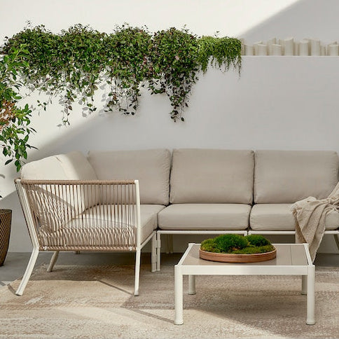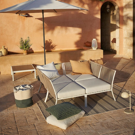 多用途に使えるアウトドア家具シリーズのコーナーソファです。アウトドアライフや屋外でのあらゆる楽しいアクティビティのためにデザインされています。食事をしたり、くつろいだりするエリアをバルコニーや中庭、テラス、庭に作ることができます。