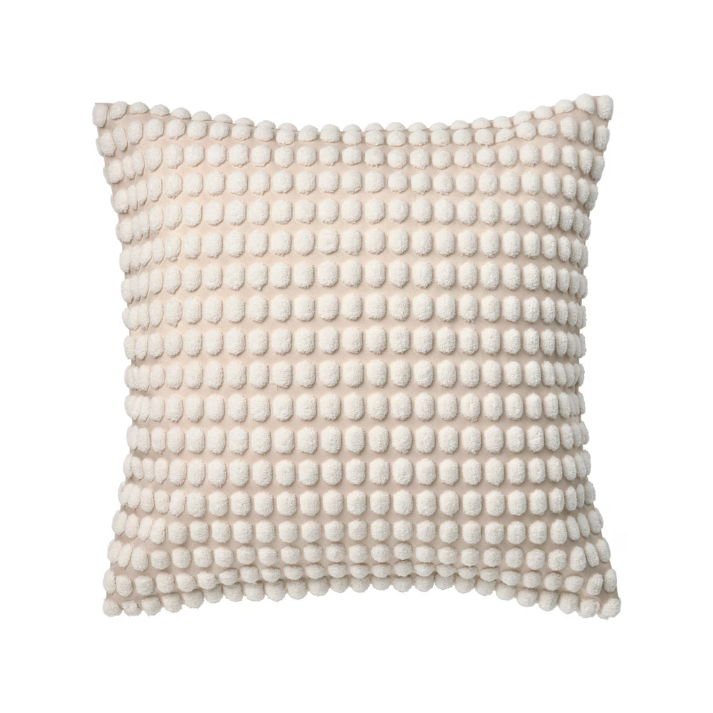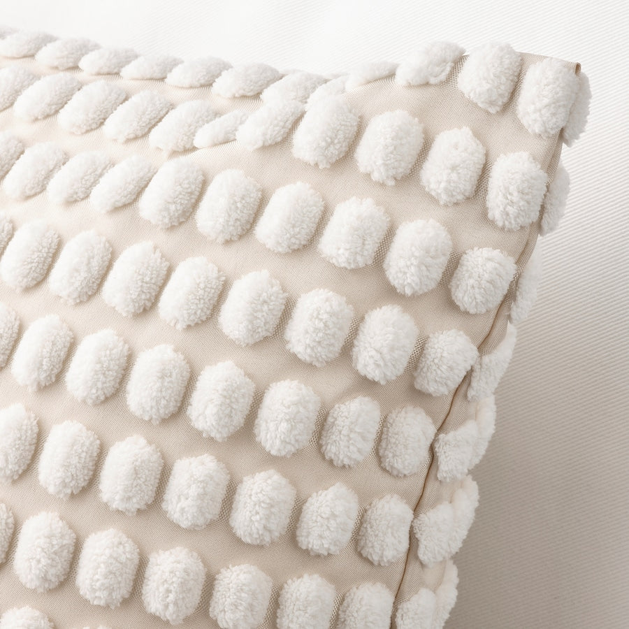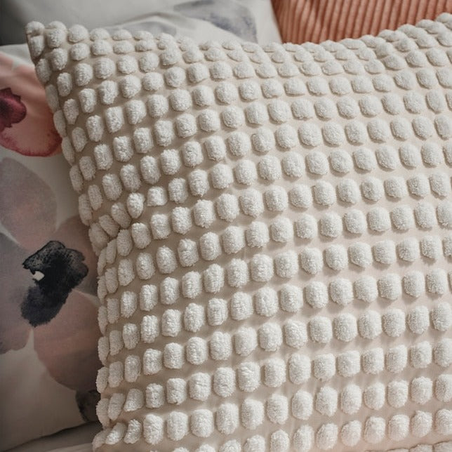 オフホワイトのとても柔らかなクッションカバーです。立体的な模様が、ベース生地とパイル部分の色のトーンの違いを引き立てます。豊富なカラーバリエーションからお気に入りを選んだり、またはいくつか組み合わせることもおすすめです。