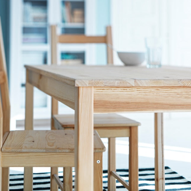 耐久性に優れた天然素材のパイン無垢材を使用したダイニングテーブルです。無塗装なので、お好みで塗料やオイル、ステインなどの仕上げ剤を施せます。
