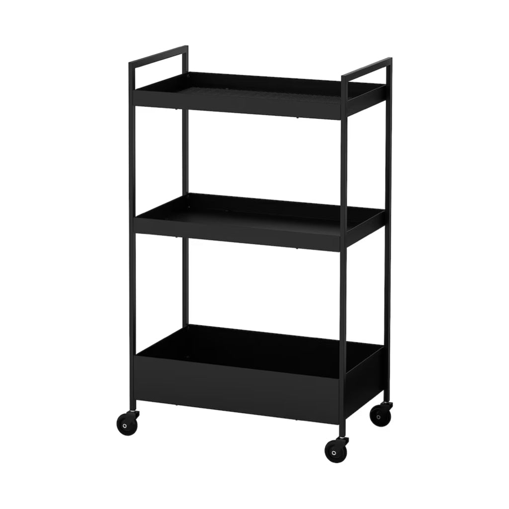 狭いスペースでも使えて、必要な場所に自由に移動できるキャスター付きのワゴンです。キッチンツールの収納だけではなく、デスクアクセサリーや携帯電話など、リビング用の収納としても活用できます。