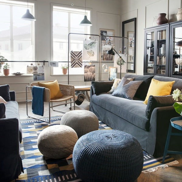 このソフトで美しいプーフはオットマンとしても、予備の椅子としても最適です。異なるサイズのプーフもご用意しています。サイズは全3種類で、サイズよって色とニットカバーの模様が異なります。