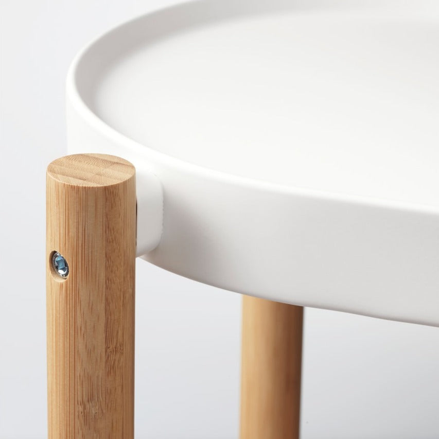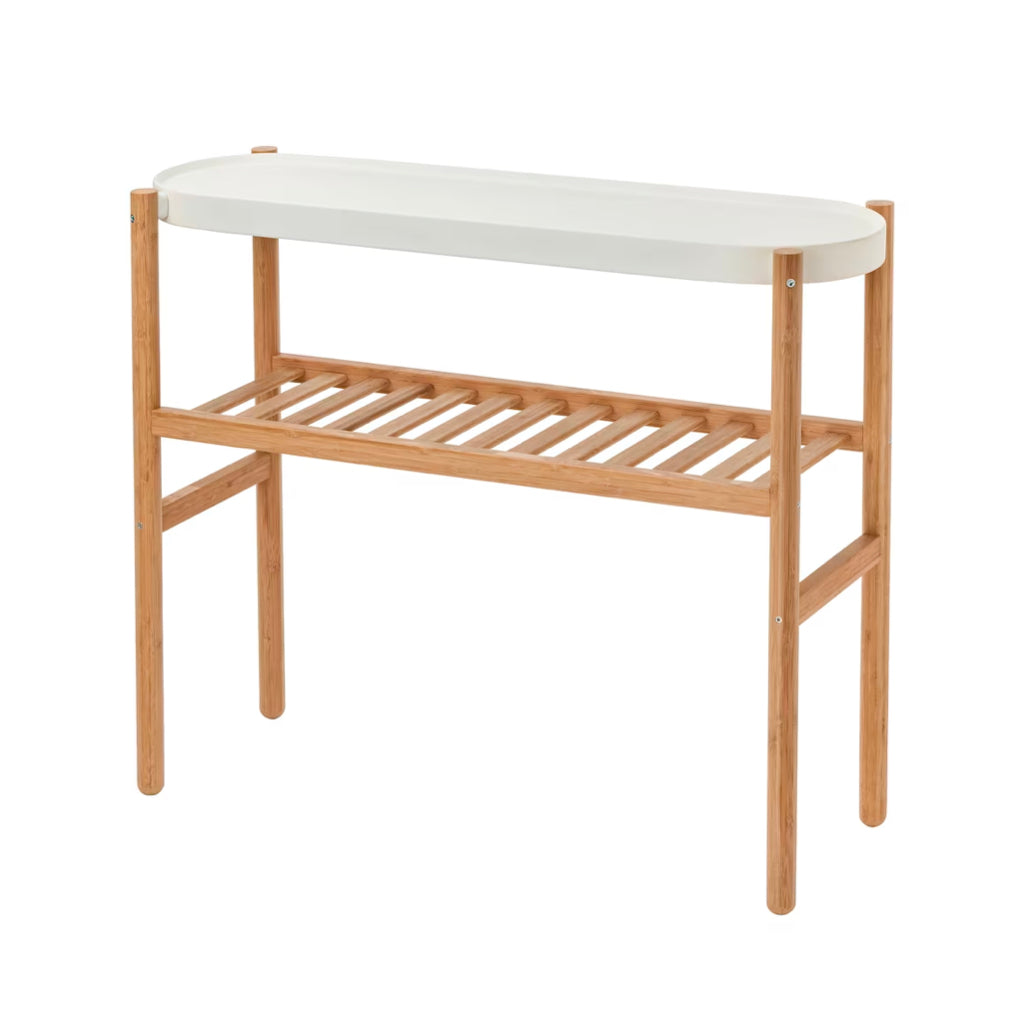 観葉植物を少し高い位置に飾ることができるプランとスタンドです。すっきりとしたデザインで、収納用の棚としても活用できます。