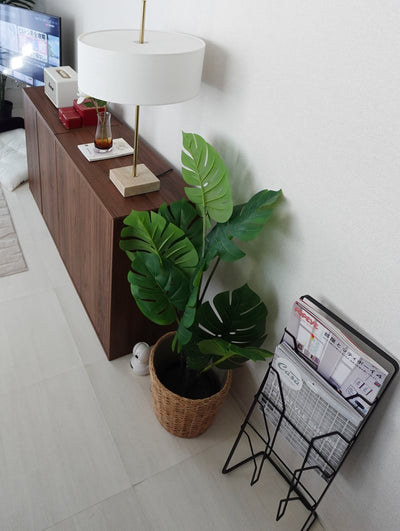 可動棚付きでニーズに合わせて収納スペースを調節できるキャビネットです。脚なしで床に置いたり、浮かせてスタイリッシュに設置することも可能です。