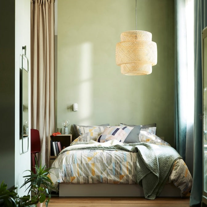 編み素材がぬくもりのある心地よい明かりを演出する竹格子のランプシェードです。室内に光の模様を描きます。手づくりなので、一つひとつ仕上がりが微妙に異なります。