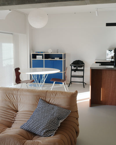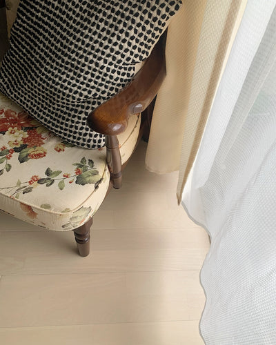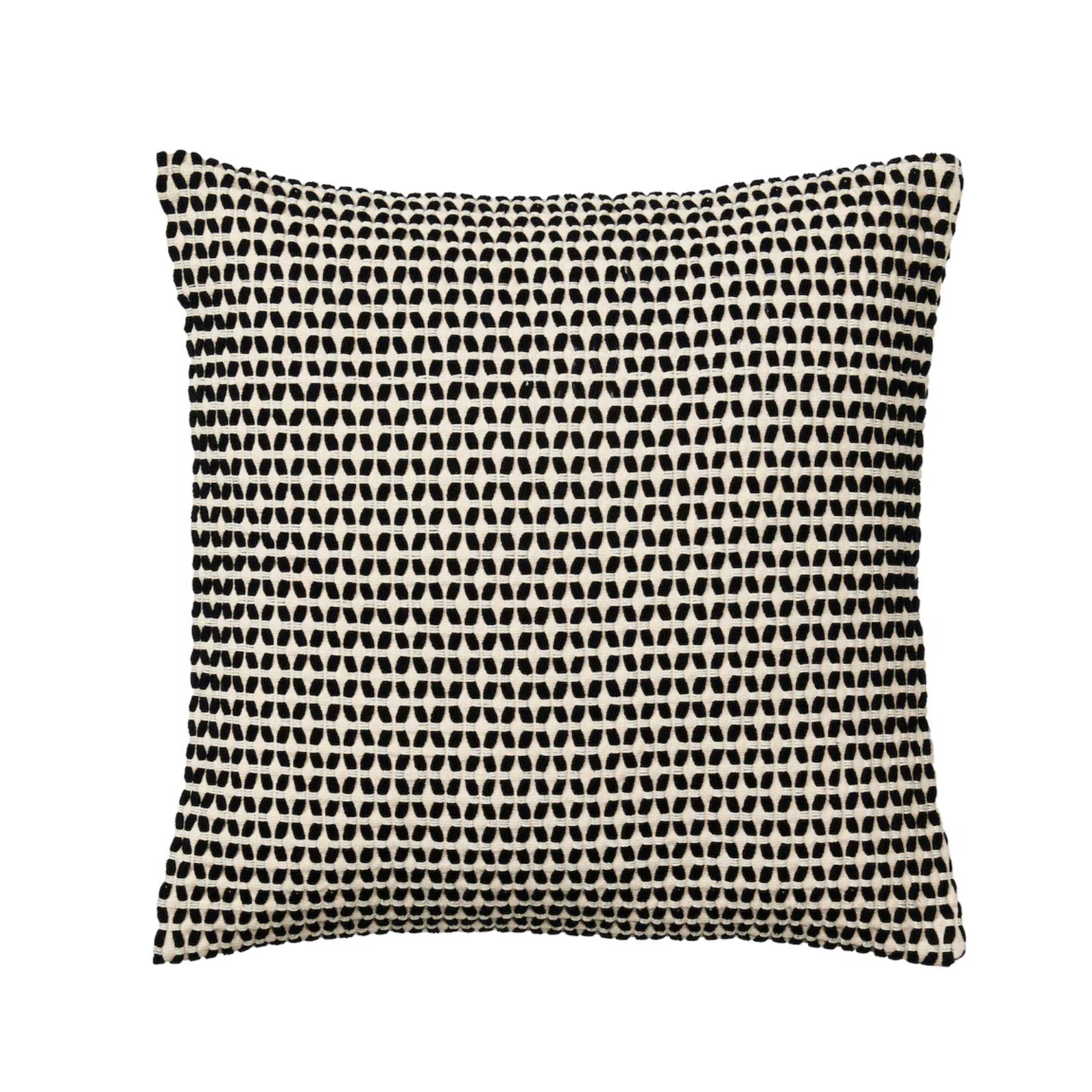 ベージュ地の模様の中に黒の糸が織り込まれた独特のデザインのクッションカバーです。思わず近くで見てみたくなるデザインが特徴です。シンプルで、しかもエレガントな色合いは、ほかの色とも相性抜群です。