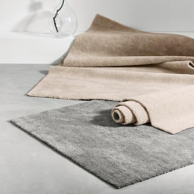厚手の甘撚りパイルを使用した心地よい肌触りのラグです。落ち着いた色とほどよい光沢の組み合わせは、部屋にハーモニーを生み出します。パイルが厚手で繋ぎ目が目立たないので、広いお部屋の場合は複数枚を合わせて使用できます。