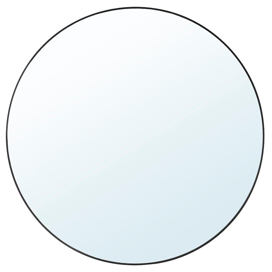 やさしい表情で、ブラックのフレームとすっきりとしたデザインがエレガントな丸いミラーです。室内に奥行きが出て生き生きとした印象になります。