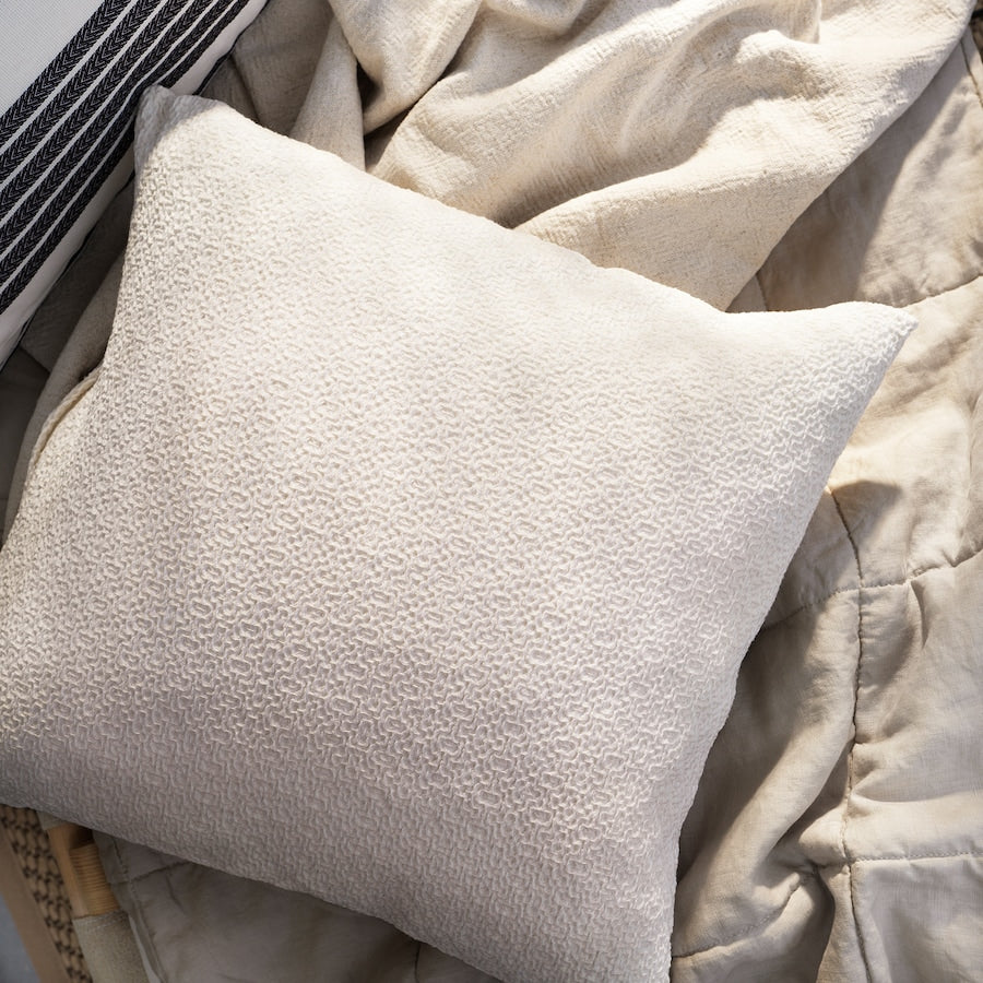 ナチュラルなアイテムが大好きという人におすすめクッションカバーです。ピュアコットン製でざっくりとした風合いです。オフホワイトのトーンはベージュ系が多い部屋にぴったりで、カラフルな部屋の場合は、落ち着いた雰囲気をもたらします。