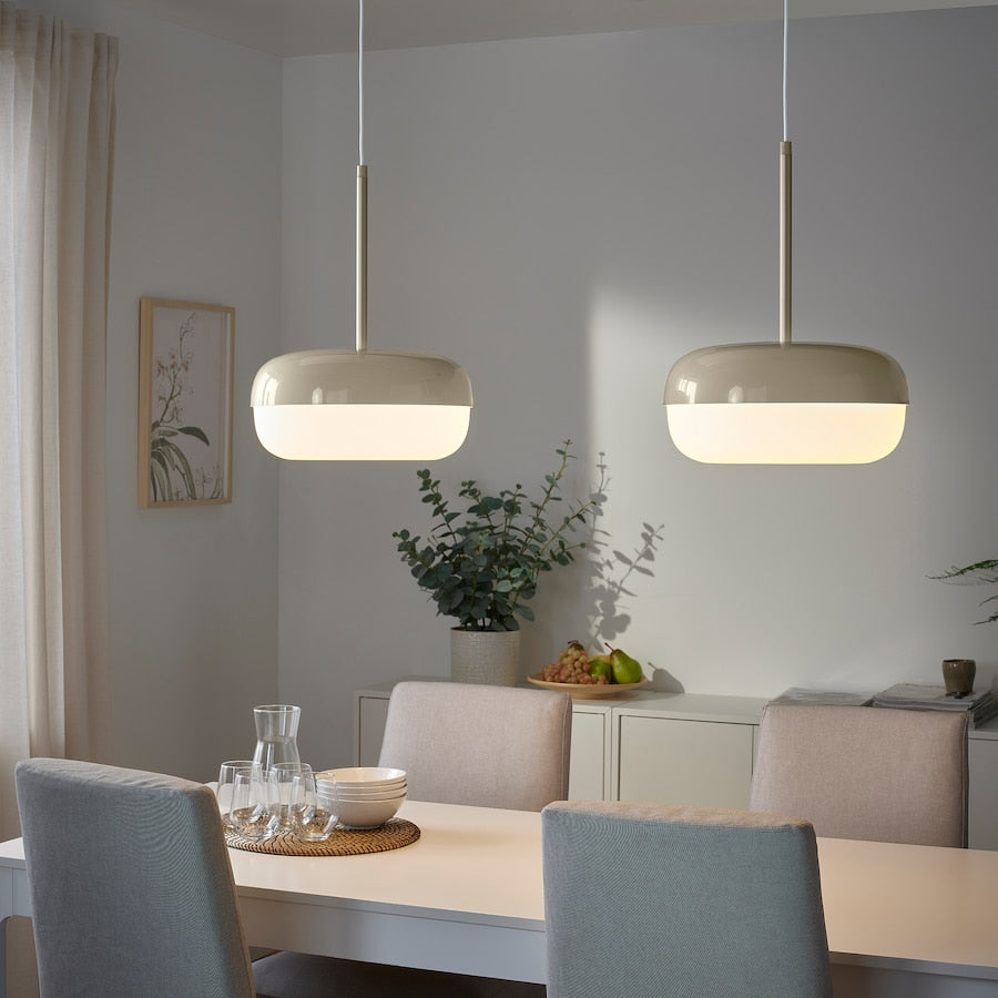 心地よい明かりでお手ごろ価格のモダンなペンダントランプです。柔らかな形がレトロな雰囲気をつくり出します。ダイニングテーブルの上につるすのに最適です。