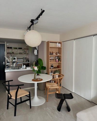 まわりに座る人全員の顔がよく見える円形のテーブルです。おしゃべりを楽しむのに最適な形で、デザインもおしゃれです。