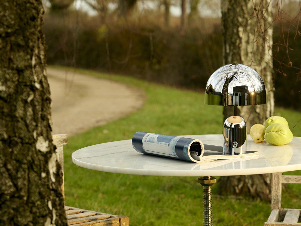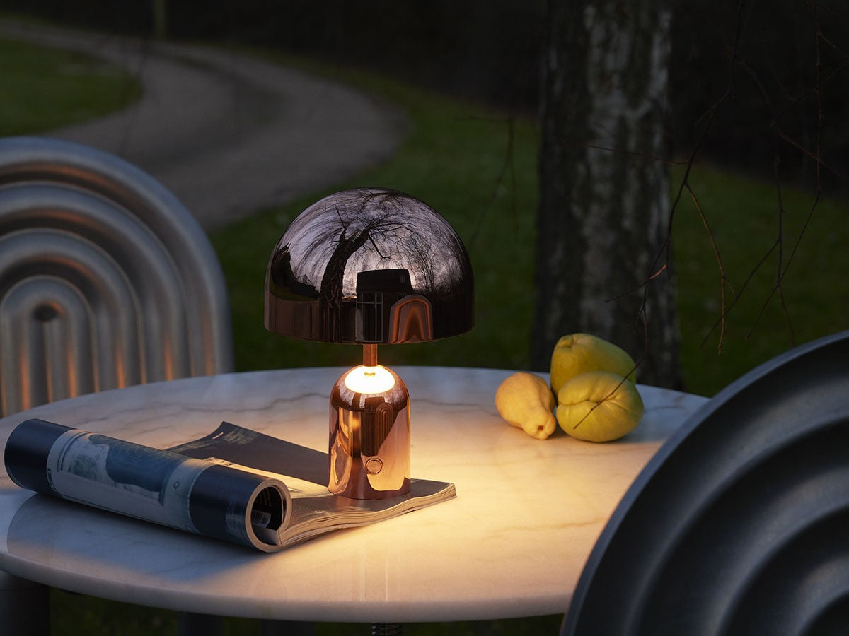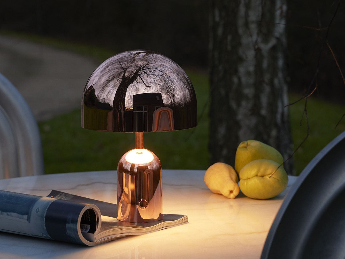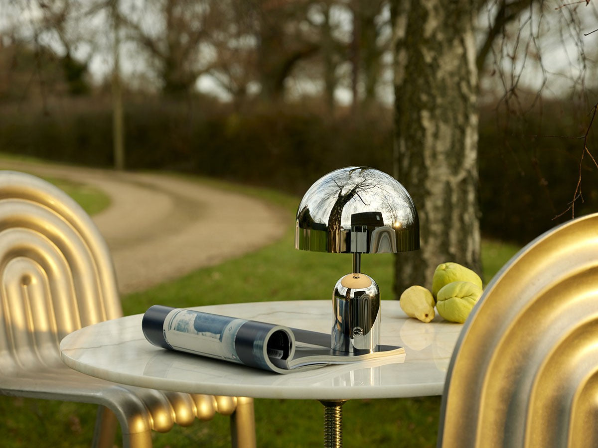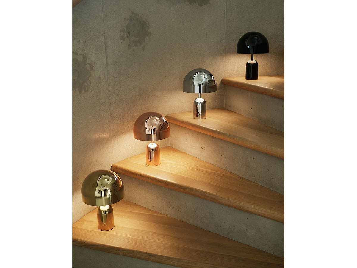 古典的な「呼び鈴」のシルエットからその名を冠した「Bell」コレクションのポータブルライト。鏡面加工された本体部分が周囲の景色や光を鏡のように映し出すことで、あらゆるシーンに溶け込みます。光源から乳半色のディフィーザーを通して放たれる光が、周辺を柔らかく包みこみます。USB充電式のため自由に持ち運びができ、ダイニングやバルコニー、またはシェルフの棚の上など、電源をとれない場所でもお使いいただけます。3段階で調光が可能なので、シーンに合わせて明るさを調節できます。
