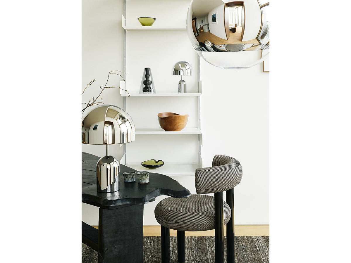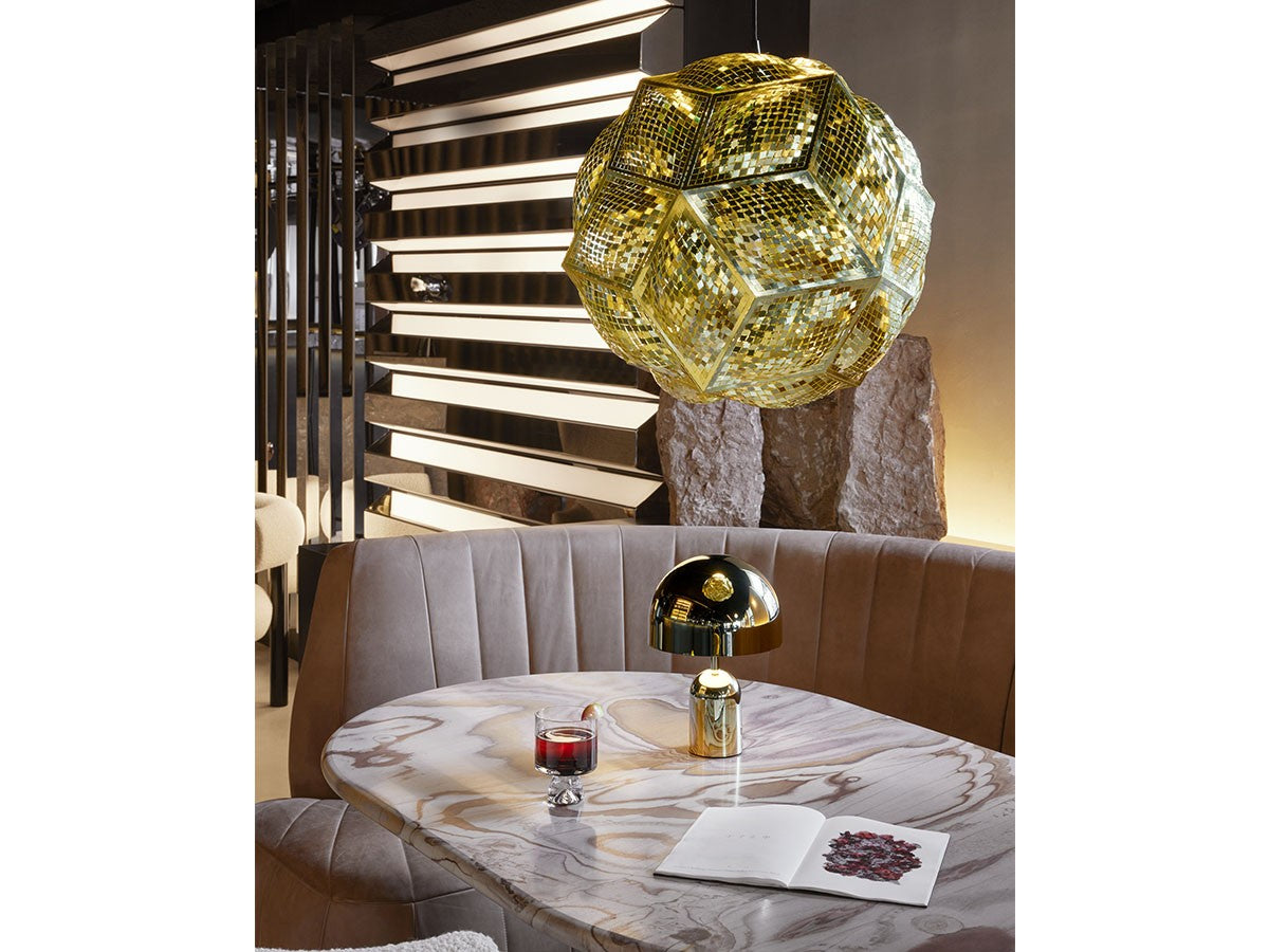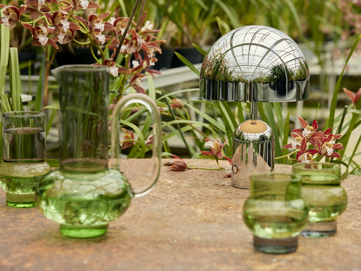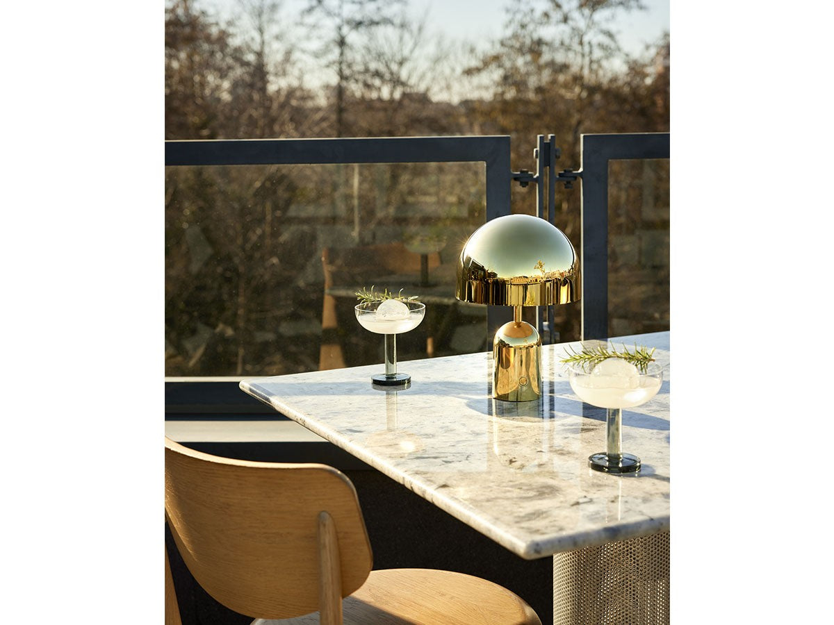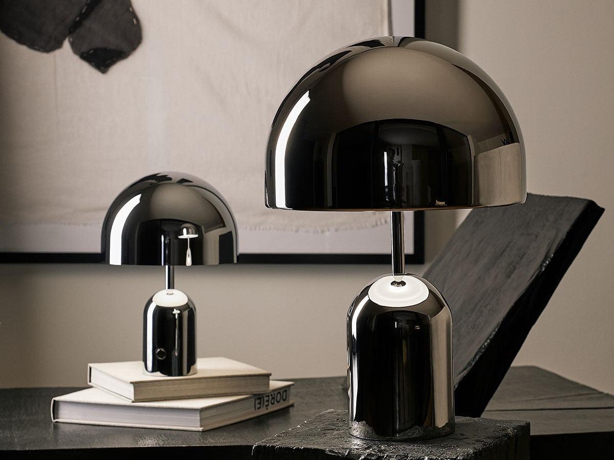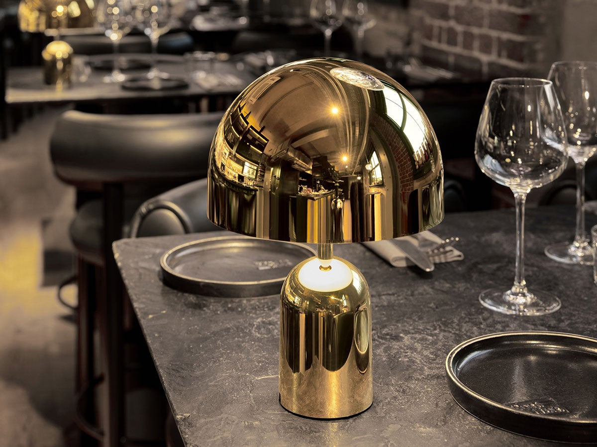 古典的な「呼び鈴」のシルエットからその名を冠した「Bell」コレクションのポータブルライト。鏡面加工された本体部分が周囲の景色や光を鏡のように映し出すことで、あらゆるシーンに溶け込みます。光源から乳半色のディフィーザーを通して放たれる光が、周辺を柔らかく包みこみます。USB充電式のため自由に持ち運びができ、ダイニングやバルコニー、またはシェルフの棚の上など、電源をとれない場所でもお使いいただけます。3段階で調光が可能なので、シーンに合わせて明るさを調節できます。