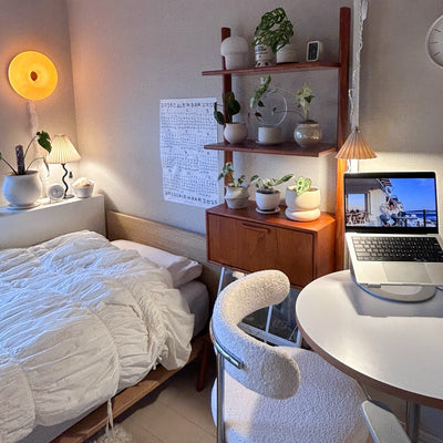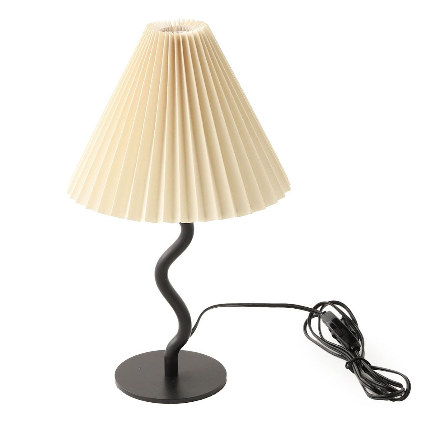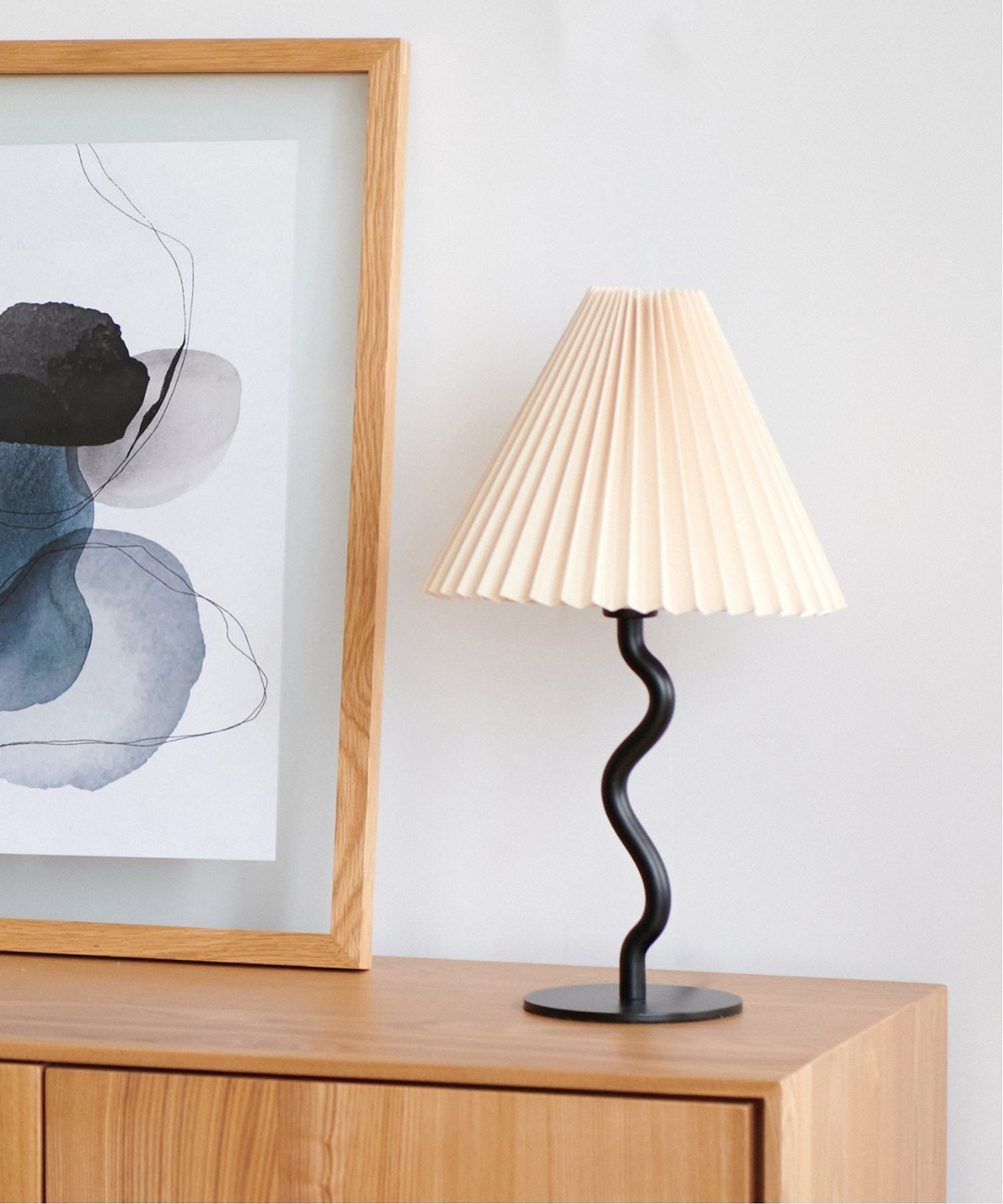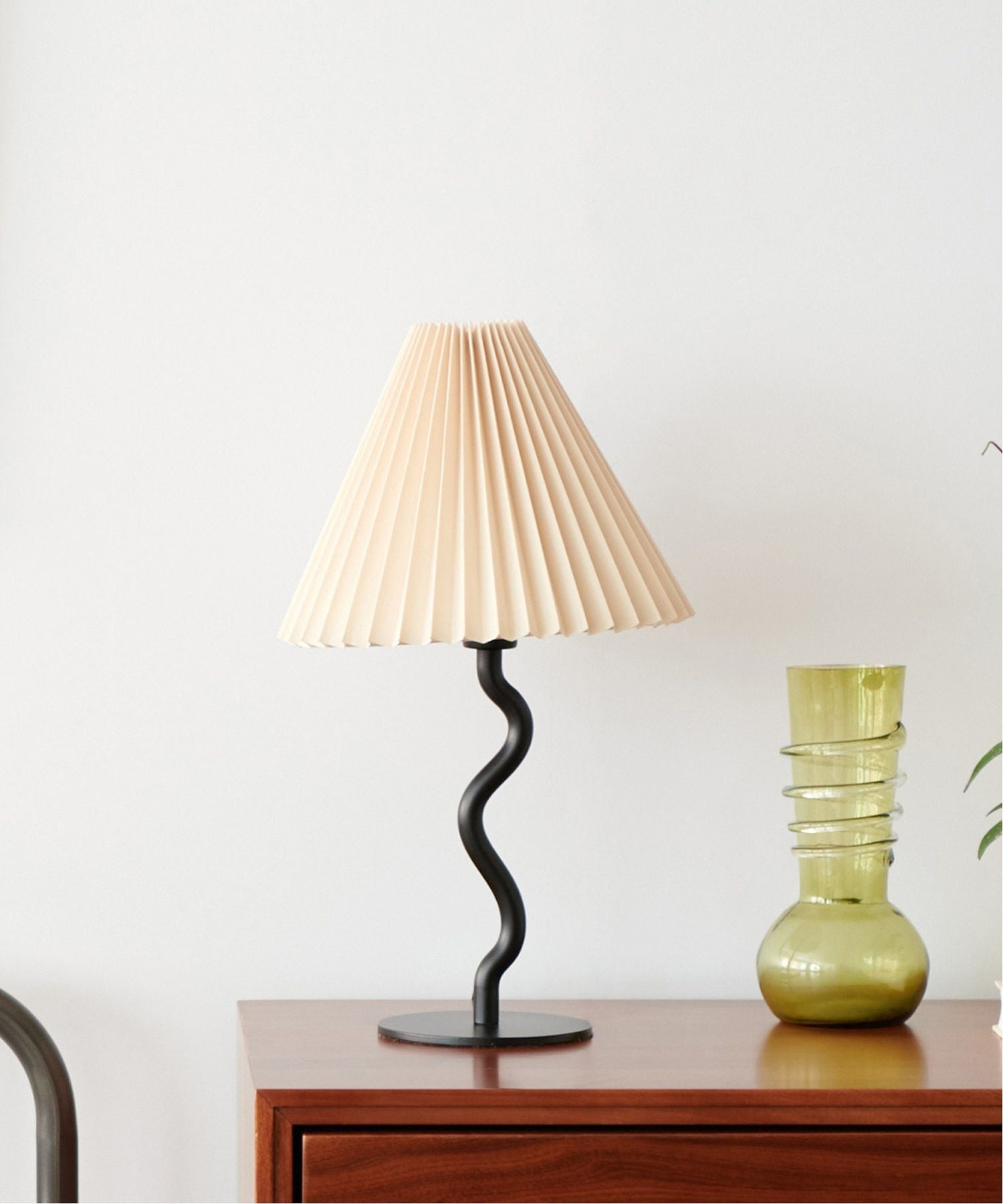 「快適さ」と「遊び心」を表現したテーブルランプです。フレームは、穏やかな海の波をイメージした曲線を描いています。遊び心のあるフォルムですが、カラーをマットブラックにすることで、様々なインテリアに馴染みやすくなっています。シェード部分は、生地を山折り谷折りした折笠シェード。ベージュの織物生地を採用し、点灯すると温かみのあるテクスチャーが浮かび上がります。シンプルなカラーを組み合わせながらも、ユニークなフォルムによって空間にアクセントを取り入れることができます。