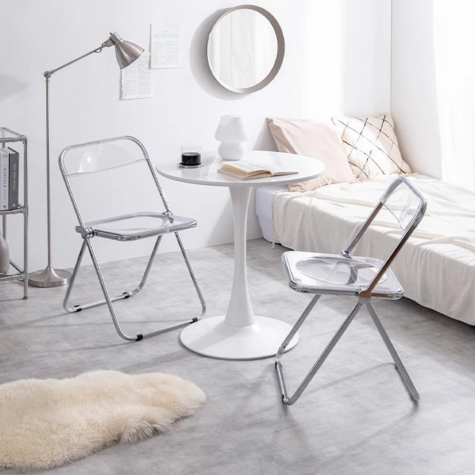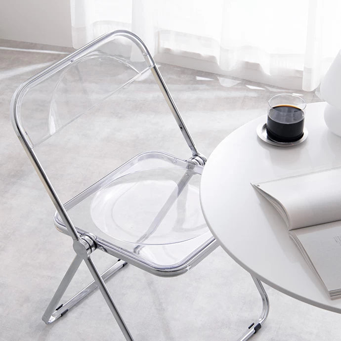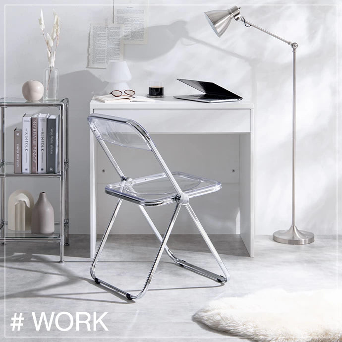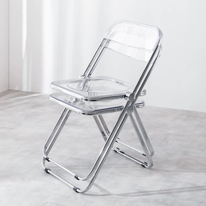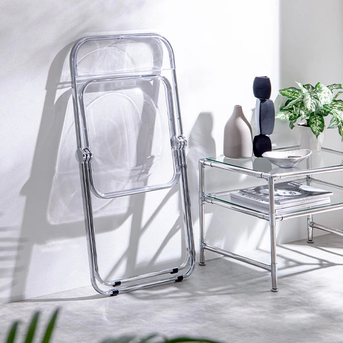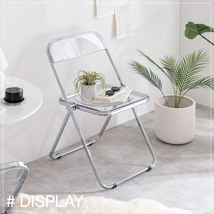 透き通った輝きが見る人を魅了するポリカーボネート製の折りたたみチェアです。室内のさまざまな色を透過させ、インテリアに色どりを加えます。