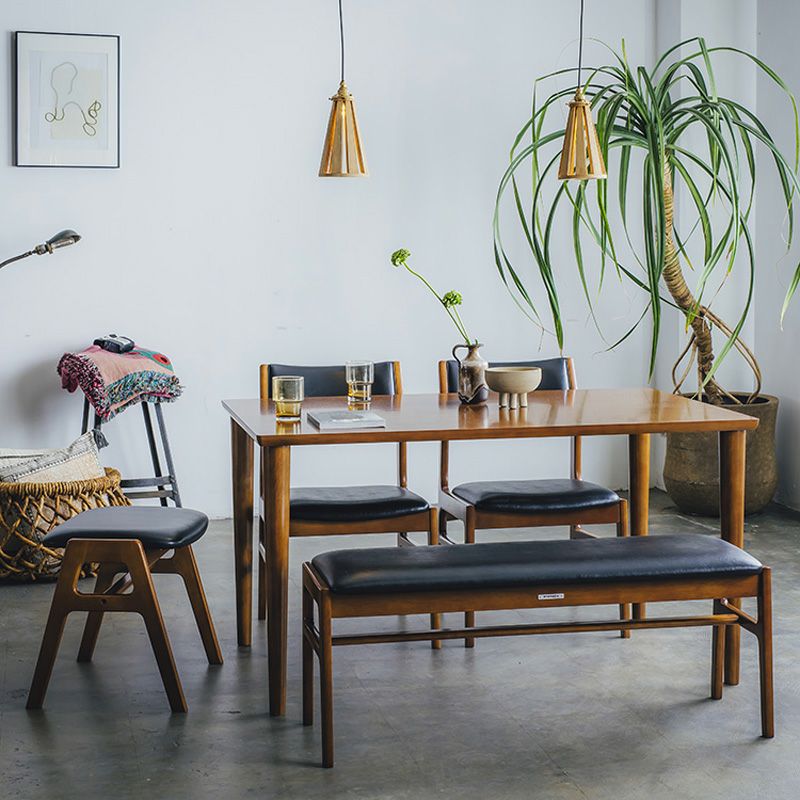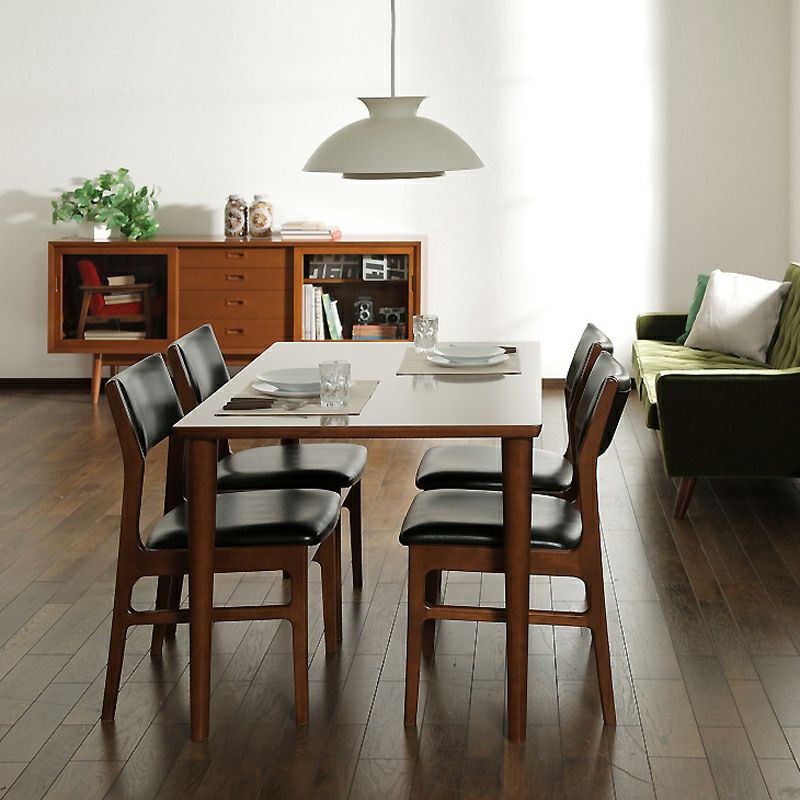 カリモク60のある生活に合わせて、2005年に新たにデザインされたのがダイニングシリーズのテーブルです。脚は天板角に取付けられているので、中に入れるチェアのスペースを広く確保しています。天板は角に丸みを持たせたデザインですので、小さなお子様がいても安心してお使い頂けます。
