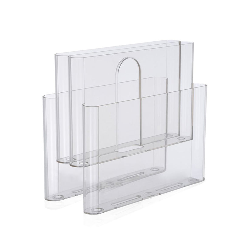 4ポケット式マのガジンラックです。中央のポケットがハンドルを兼ねているので、持ち運びも簡単です。直線的でエッセンシャルなデザインは、どこにいてもおしゃれです。典型的イタリアンデザインで、カルテルコレクションのロングセラーアイテムです。