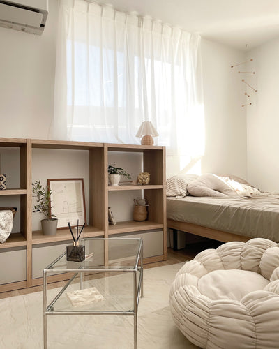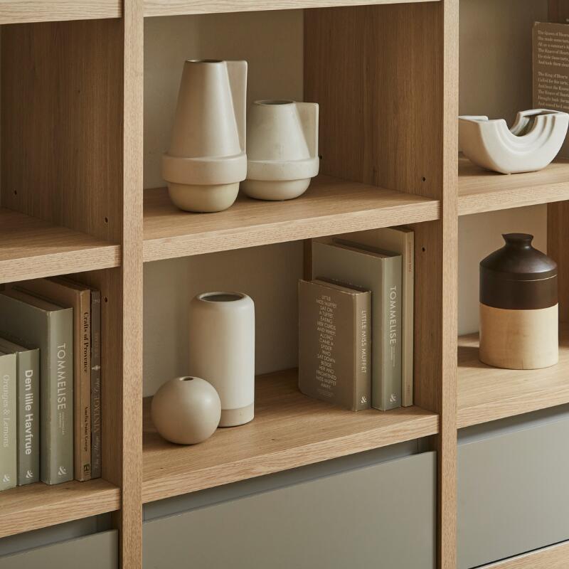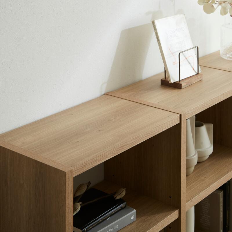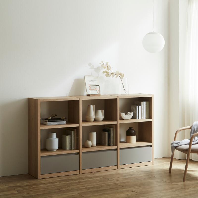 硬度が高く耐熱性や耐水性を兼ね備えたメラミン素材を使用したシェルフです。傷に強く焦げにくいのでキッチンでも使用できます。収納ができる引き出しもついているので見せるものと見せないものを分けて収納できます。