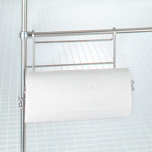 水平バーとサイドバーにかけて使用する、オプションのキッチンペーパーホルダーです。芯の穴直径3cm以上、ロール最大直径14cm以内、長さ23cm以内の一般的なロール式キッチンペーパーを1点セットできます。シンプルで高級感がありますので、どんなキッチンにもすっと馴染みます。