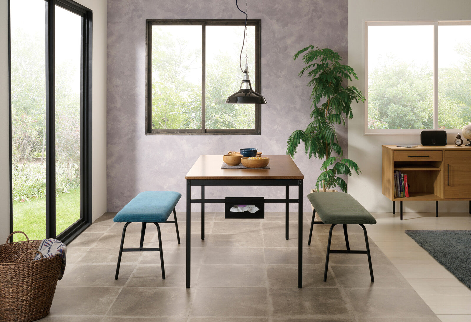 武骨な素材を使ったインダストリアルデザインと、暖かみのある素材が調和したベンチです。男女問わずスタイリングしやすい色合いを取り揃えました。明るめのナチュラルな雰囲気に、引き締まった黒いフレームのインダストリアルデザインの家具を使ったコーディネートは、メリハリが効いたアクセントのある空間に仕上げます。