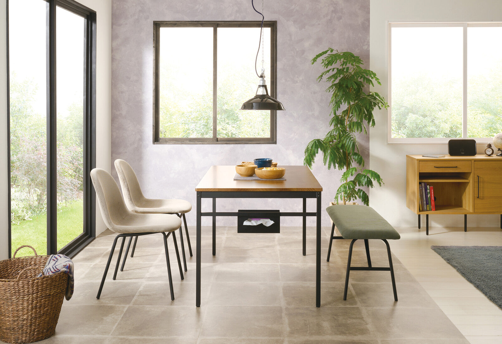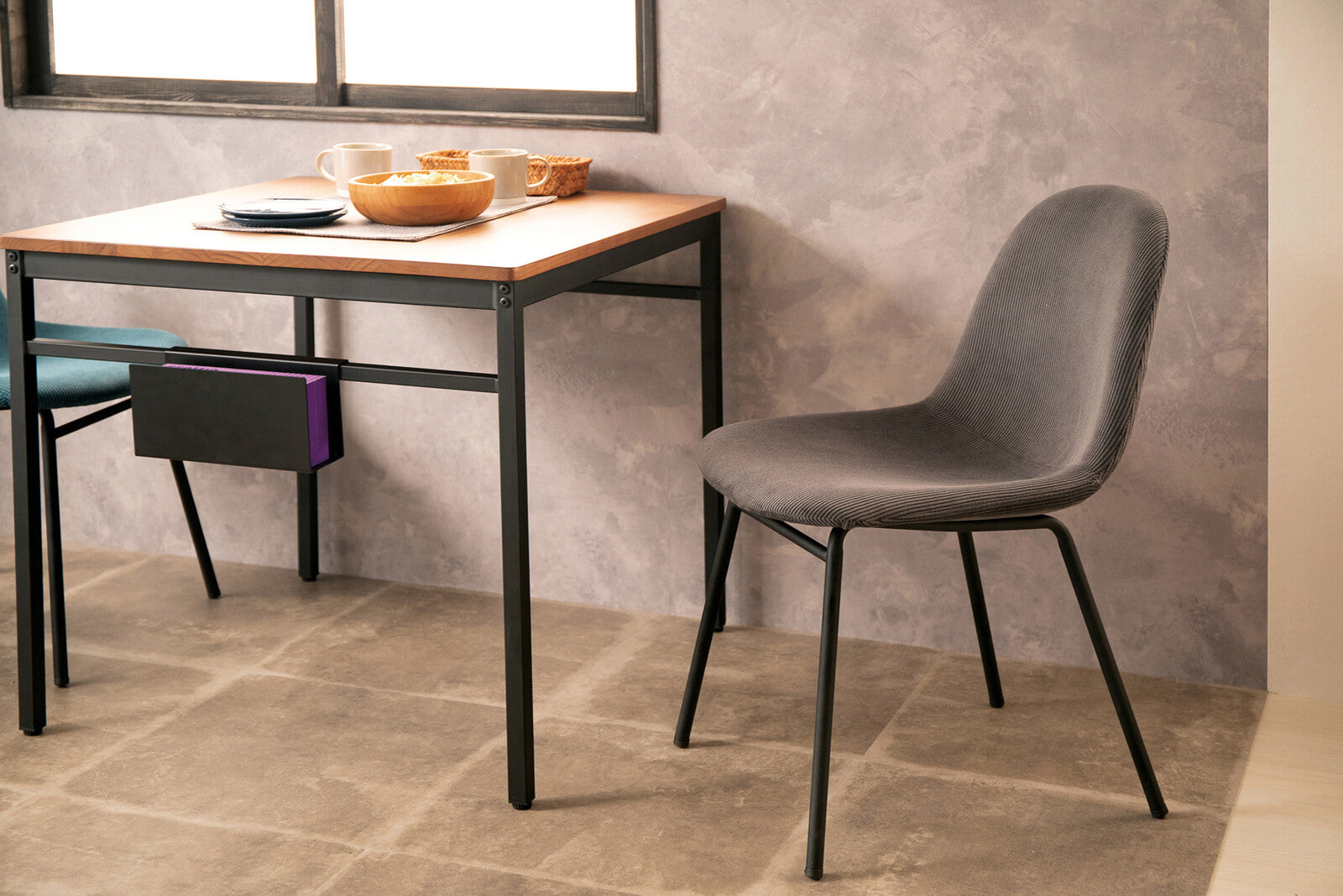 武骨な素材を使ったインダストリアルデザインと、暖かみのある素材が調和したチェアです。男女問わずスタイリングしやすい色合いを取り揃えました。明るめのナチュラルな雰囲気に、引き締まった黒いフレームのインダストリアルデザインの家具を使ったコーディネートは、メリハリが効いたアクセントのある空間に仕上げます。