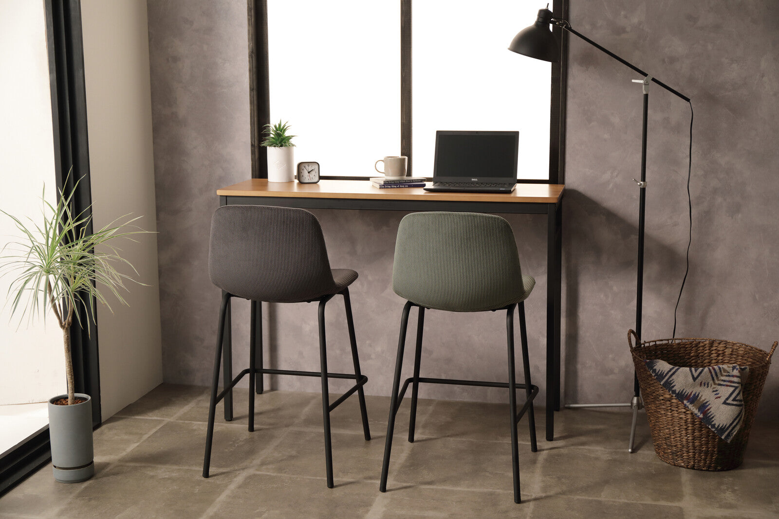 武骨な素材を使ったインダストリアルデザインと、暖かみのある素材が調和したハイテーブルです。男女問わずスタイリングしやすい色合いを取り揃えました。明るめのナチュラルな雰囲気に、引き締まった黒いフレームのインダストリアルデザインの家具を使ったコーディネートは、メリハリが効いたアクセントのある空間に仕上げます。日本のティッシュの年間消費量は47トン。世界でも一番消費されているティッシュに注目し、ノアルのダイニングテーブルには専用の収納場所を設けました。天板下にティッシュを隠して収納することで生活感を抑え、テーブル上をスッキリさせることができます。ティッシュが出しっぱなしでどこにあるかわからないということがなくなり、決まった定位置からサッと引き出せ、便利にお使いいただけます。