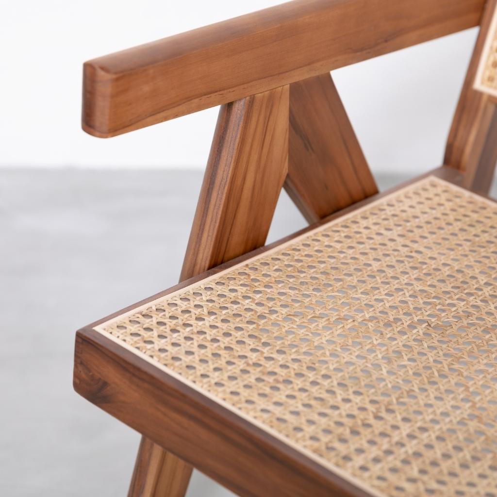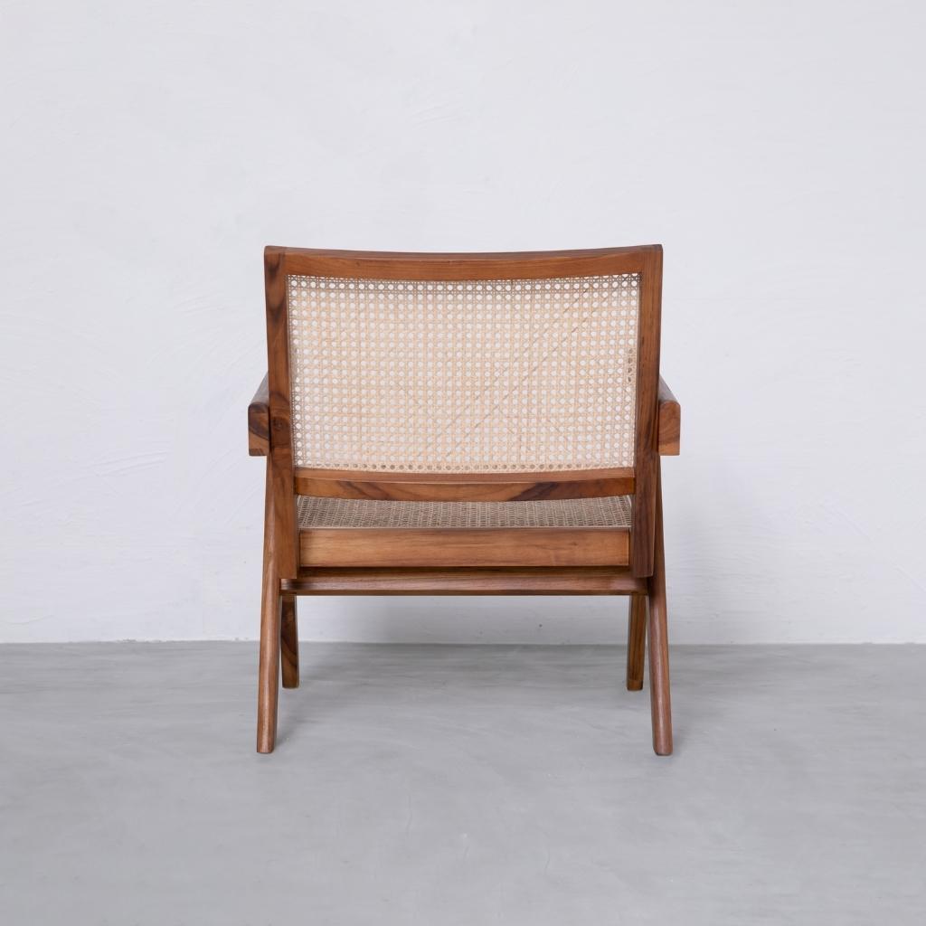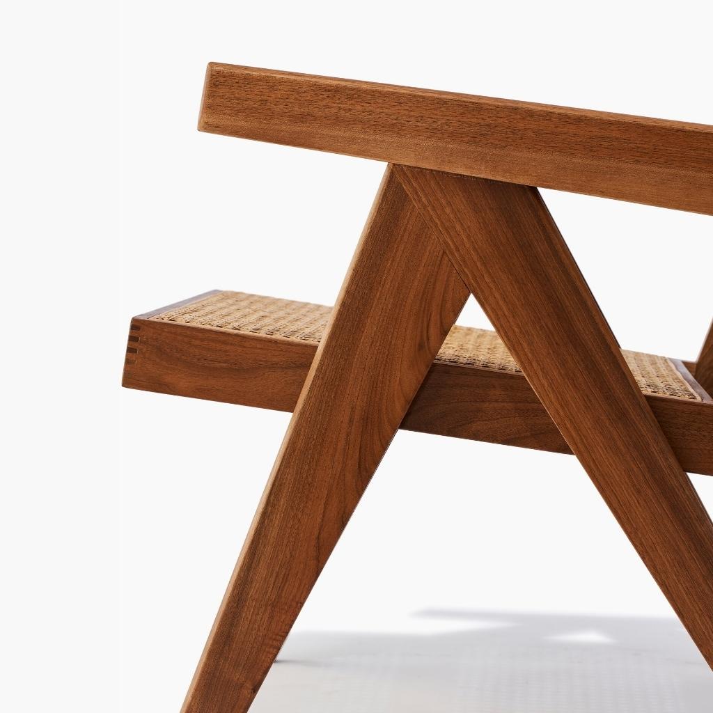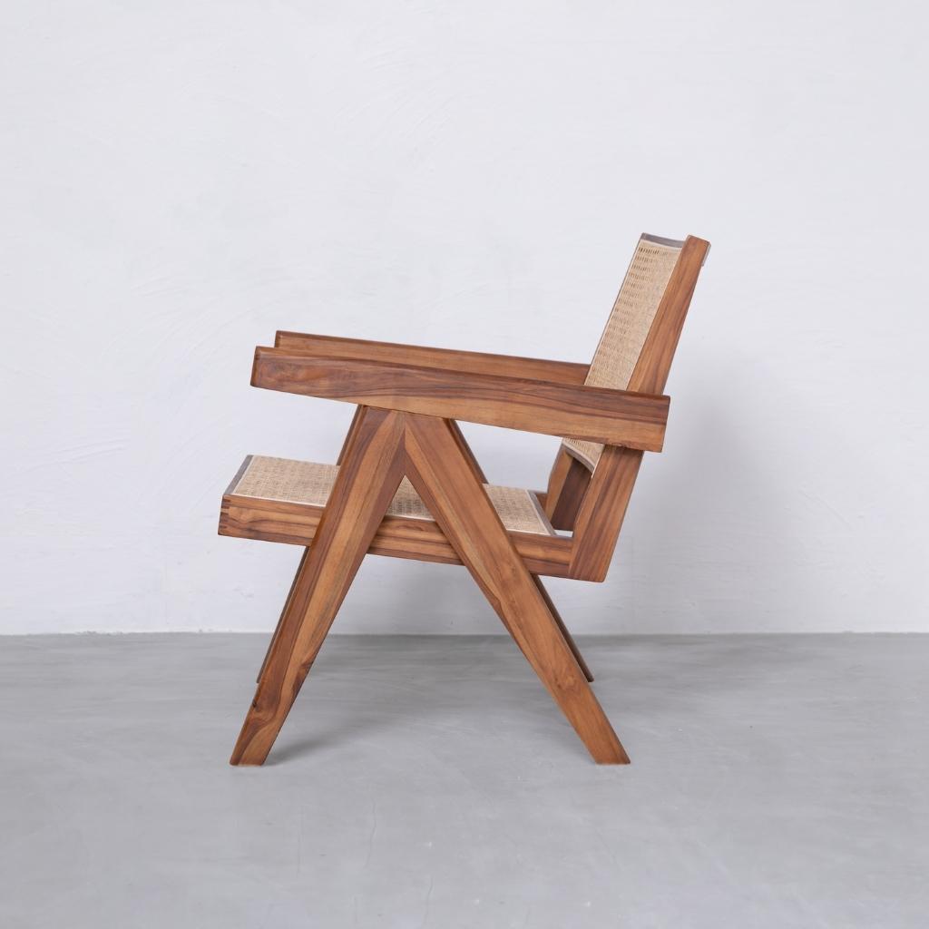 1950年代中期、インドのチャンディーガル都市計画の際にピエール・ジャンヌレによってデザインされたものです。オフィスや住居、公共施設など様々な場所での利用のためデザインされたラウンジチェアです。座面にラタンが使われていることにより、通気性・吸湿性に優れ、室内環境を保ってくれるのでオールシーズンご利用いただけます。オリジナルのヴィンテージとは違い日常使用にも十分に耐えうる頑丈な作りとなります。