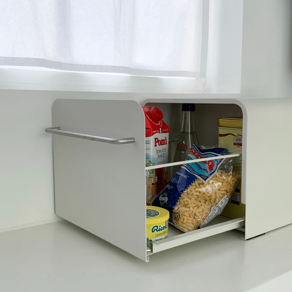 Ogre オグレ 雲 鉄製スライディング収納棚ベーシックタイプは、限られた空間でもすっきり収まる省スペース設計。キッチン周りの小物整理に最適。