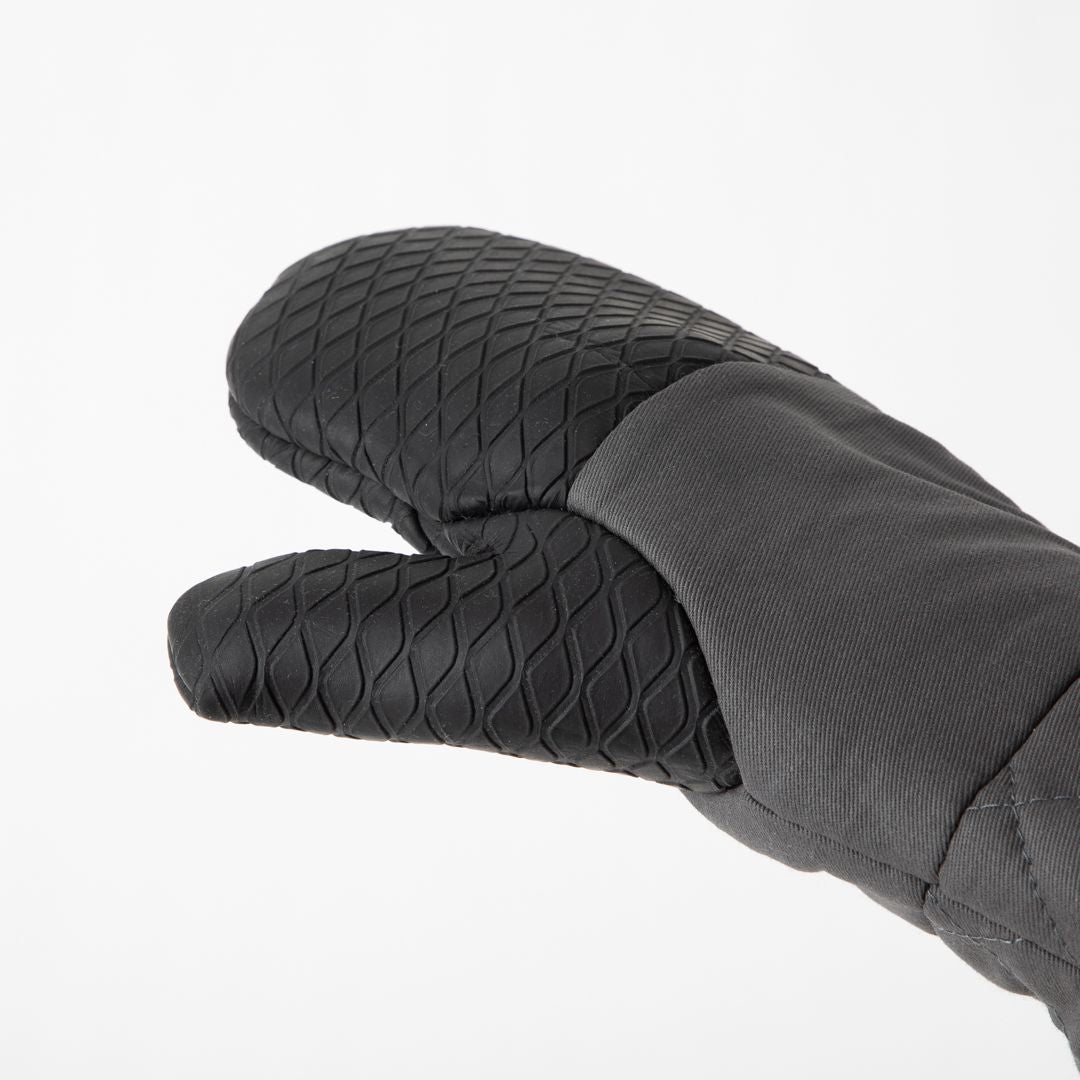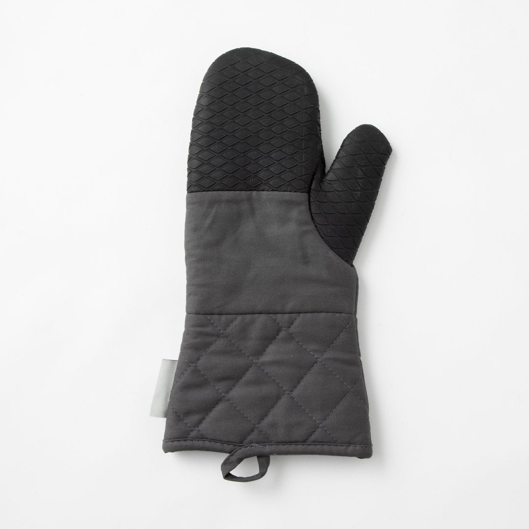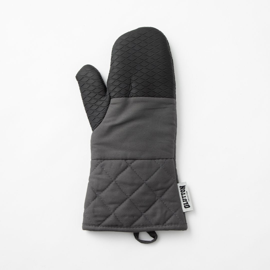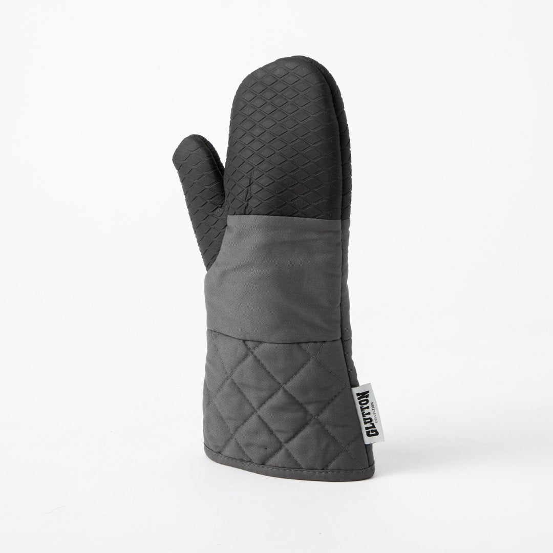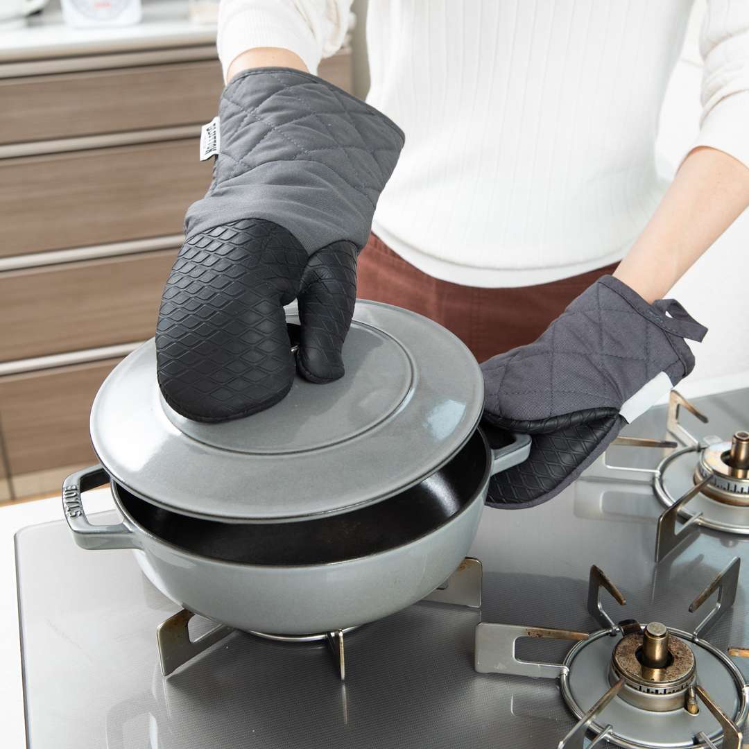 あつあつの料理もしっかり持てる。実力派オーブングローブオーブンで焼いたあつあつのグラタン、ぐつぐつと煮込んだお鍋など、温かい料理はおいしさも格別。できたての料理をそのまま食卓に持って行きたいとき、活躍するのがグラットン オーブン グローブです。片手にサッとはめれば、熱いものを持ってもへっちゃら。熱をしっかりシャットアウトするので、高温のスキレットや鍋などをしっかり掴め、取り出しや持ち運びができるようになります。布巾などで代用すると火傷の可能性もあるので、安全に料理をするためにも一つは持っておきたいオーブン グローブ。ご自宅のキッチンに常備して、高温調理のお供にしてください。耐熱温度は180℃で熱さをしっかりガードグラットン オーブン グローブは180℃の温度まで耐えられるから、できたての料理を持っても大丈夫。掴みの部分がゴム製なので、手に熱が伝わりにくいのも嬉しいですね。さらにサイズも大きめで、腕までしっかりガードできます。特にオーブン料理は高温になりやすいですが、安心して使うことができるでしょう。家でもアウトドアでも大活躍家でのオーブン料理や鍋料理だけでなく、キャンプやバーベキューなどアウトドアでも活躍します。鉄製の調理器具で作る本格的な焚火料理や、肉や魚などを串焼きにするワイルドなアウトドア料理は、火を使ったものが多いですよね。そんなときも、グラットン オーブン グローブがあれば、熱さを気にせず快適に料理ができるでしょう。外で手料理を楽しむときにも、ぜひ一緒に持って行ってください。掴む部分がゴム製だから滑にくいオーブングローブを使用する際に気をつけたいのが、高温のフライパンやできたての料理が入ったお皿を、掴んだときに滑らせてしまうことです。そんな心配が減らせるよう、グラットン オーブン グローブは掴む部分がクロロプレンゴムでできています。ゴムは摩擦が大きいので、掴んだものが滑りにくいのが特徴。グローブ型なのもポイントで、親指を使ってしっかりで挟みながら、安定して運べるでしょう。腕部分はコットン100%になっていて、着脱のしやすさや通気性の良さが確保されているのも嬉しいですね。ループ付きで収納にも便利グラットン オーブン グローブの手の入れ口部分には、小さなループが付いていて、フックに引っ掛けられるようになっています。引き出しの中などにしまうと取り出すのが面倒ですが、引っ掛ける収納なら必要なときすぐに取ることが可能。洗濯後も干しやすいのが良いですね。カジュアルなデザインがおしゃれなので、見せる収納にもおすすめです。