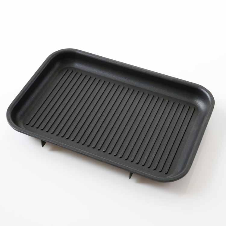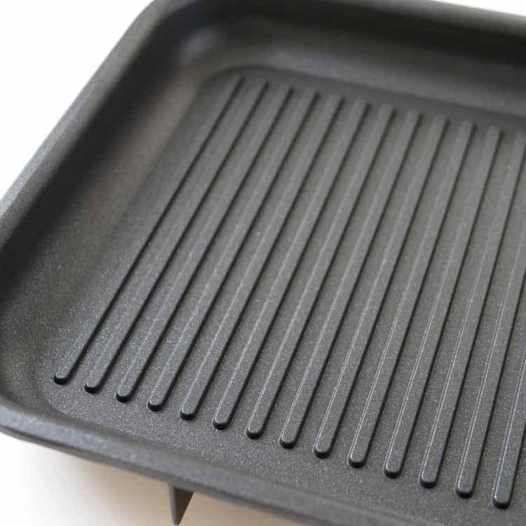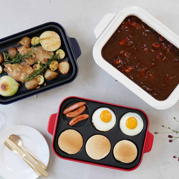 アイデア広がるオプションプレート 食卓を彩るBRUNOコンパクトホットプレートの上にセットして幅広いメニューを楽しめるオプションプレート&鍋が登場です。何をつくろう…?考えるのが愉しくなるコンパクトホットプレート用のオプションパーツ3種。朝食からしっかりディナーまでシーンに合わせて便利に使えます。いつものご飯がごちそうに。?家族や友達との何気ない食事もイベントに早変わり。オプションプレートを上手に使ってホットプレートご飯の達人になっちゃいましょう。メニューに合わせて選べる3種類 一度に6つの定番まん丸パンケーキや目玉焼きが焼けるマルチプレート。余分な脂を落としてヘルシーにお料理を楽しめるグリルプレート。表面はセラミックコート加工によりキズや焦げがつきにくい深さのあるセラミックコート鍋。全て簡単に取り外して丸洗いできるので、お手入れも楽々です。※こちらの商品は「コンパクトホットプレート」用となります。「ホットプレート グランデサイズ」には対応しておりませんのでご確認の上お買い求めください。きれいな焼き色がつくグリル専用プレート グリルプレートの使い方はとてもシンプルで、調理したい魚や肉、野菜などをそのまま乗せ焼き上げるだけ。プレートの表面部分が凸凹になっているのが特徴で、魚やお肉の余分な脂を落とし、ヘルシーに焼き上げます。キャンバスのようにお好みの食材を並べてスイッチON。簡単ステップで素材の旨味を感じられるのでお料理の苦手な方にもおすすめのプレートです。おいしく焼き上げる秘密は? 深めのリブで、お肉から出る脂が調理時に肉に直接付着しないよう、流れ落ちていく仕組みになっているのでヘルシーな仕上がりになります。一度焼き目を付けてから90度回転させて焼くと、きれいな格子柄の焼き目に仕上がりますよ。お洒落なパッケージ コンパクトホットプレートとおそろいのイラストで同じ横幅のパッケージなので収納もスッキリ。コンパクトホットプレートと合せてのギフトにもおすすめです。最後までご覧いただきましてありがとうございます。撮影のため調理をしているうちに、3種のオプションプレートの魅力にどんどんはまっていくスタッフたち。コンパクトホットプレートがあったら絶対これも欲しいよねと大盛り上がりでした。専用ボックスに収納しなくても、コンパクトホットプレートときれいにスタッキングしてスッキリ収納できるのも魅力的で、お友達への引っ越し祝いの候補に。ホットプレート料理は簡単なのにお洒落でお料理上手になれた気分を味わえそうです。