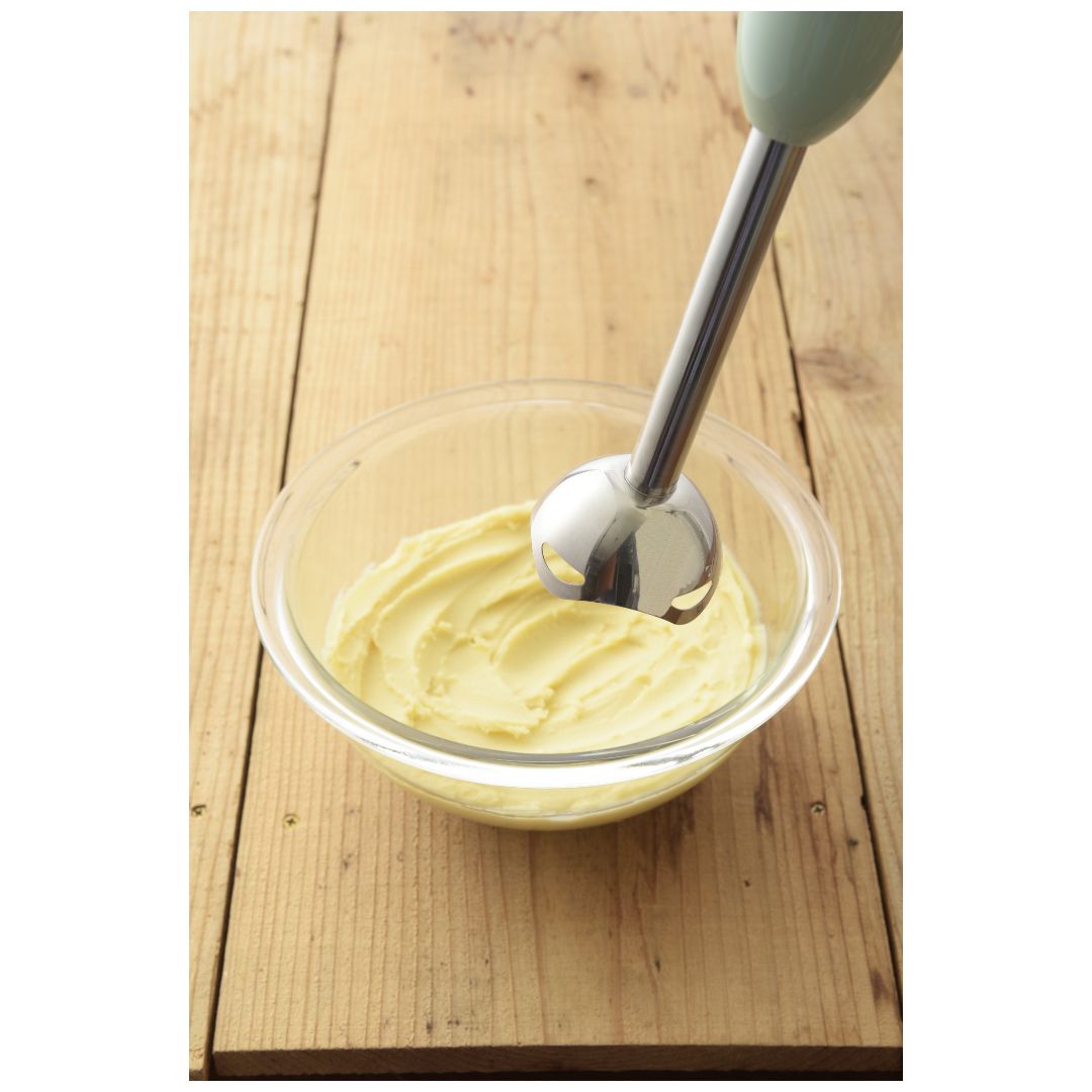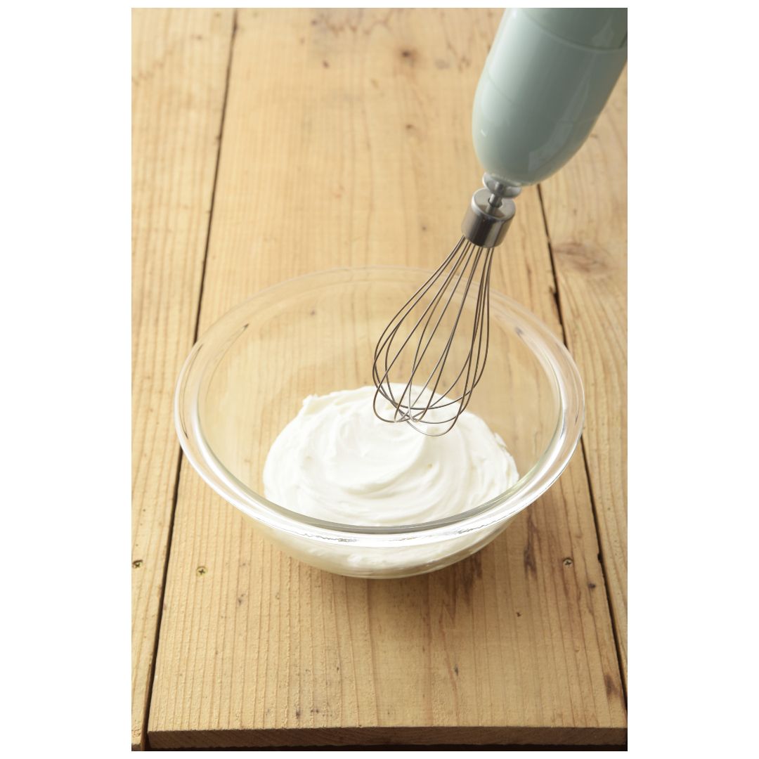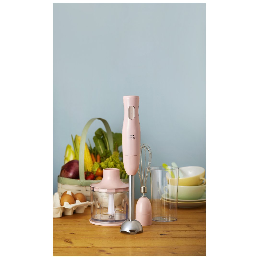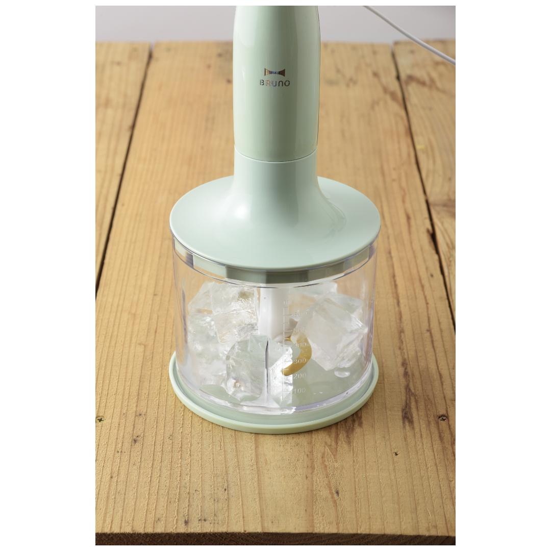 1台5役。料理の幅を広げるスティックブレンダー料理の幅を広げたいとき、時短で凝った料理を作りたいときに役立つのが、このブレンダーです。BRUNOのマルチスティックブレンダーは、5役をこなす優秀アイテム。『混ぜる』『つぶす』『刻む』『砕く』『泡立てる』などの、さまざまな調理作業がこれ1台。コンパクトながら力強いパワーで、幅広い料理の時短を叶えます。面倒な下ごしらえはスイッチひとつ。離乳食作りに、お菓子作りに食材を細かく刻んだり、潰したり、混ぜたりする下ごしらえ作業は、時間も労力も要するのでとても大変。このマルチスティックブレンダーがあれば、面倒な下ごしらえのストレスも解消できるでしょう。スイッチを押すだけで、食材を思い通りの形に仕上げられます。育児中の離乳食作りはもちろん、失敗しやすいお菓子作りの泡立ても、ブレンダーを使えばほんの一瞬。ポタージュやスムージー、フローズン作りにも使えます。コンパクトで使いやすく、片付けも簡単マルチスティックブレンダーは、スリムなボディが魅力の一つ。手の小さな女性でも扱いやすく、使用前の準備も簡単なので、必要な時にさっと取り出して使えます。さらに、使った後の片付けが簡単なのも嬉しいポイント。アタッチメントを取り外して洗うだけでOKです。コンパクトに仕舞えるので、収納場所も取りません。スタイリッシュなフォルムで見た目も合格。見た目のスタイリッシュさも、このブレンダーの特徴です。無駄な装飾のないミニマルなデザインは、キッチンに置いておいても生活感を感じさせません。おしゃれなキッチンアイテムは見た目が良く、料理のモチベーションを高めてくれるでしょう。カラーは料理を引き立てる3色、アタッチメントは万能性を叶える3種マルチスティックブレンダーのカラーバリエーションは、3色。シンプルなアイボリー、かわいらしいピンク、爽やかなグリーンがラインナップされています。どれもパステルがかった柔らかな色味で、ステンレスシルバーとの相性は抜群。食材の色鮮やかさも引き立てます。また、付属品としてブレンダー、チョッパー、ホイッパーの3種のアタッチメントが付いており、あらゆる調理に対応可能。本体は、コンセントを指してスイッチを押すだけで作動します。