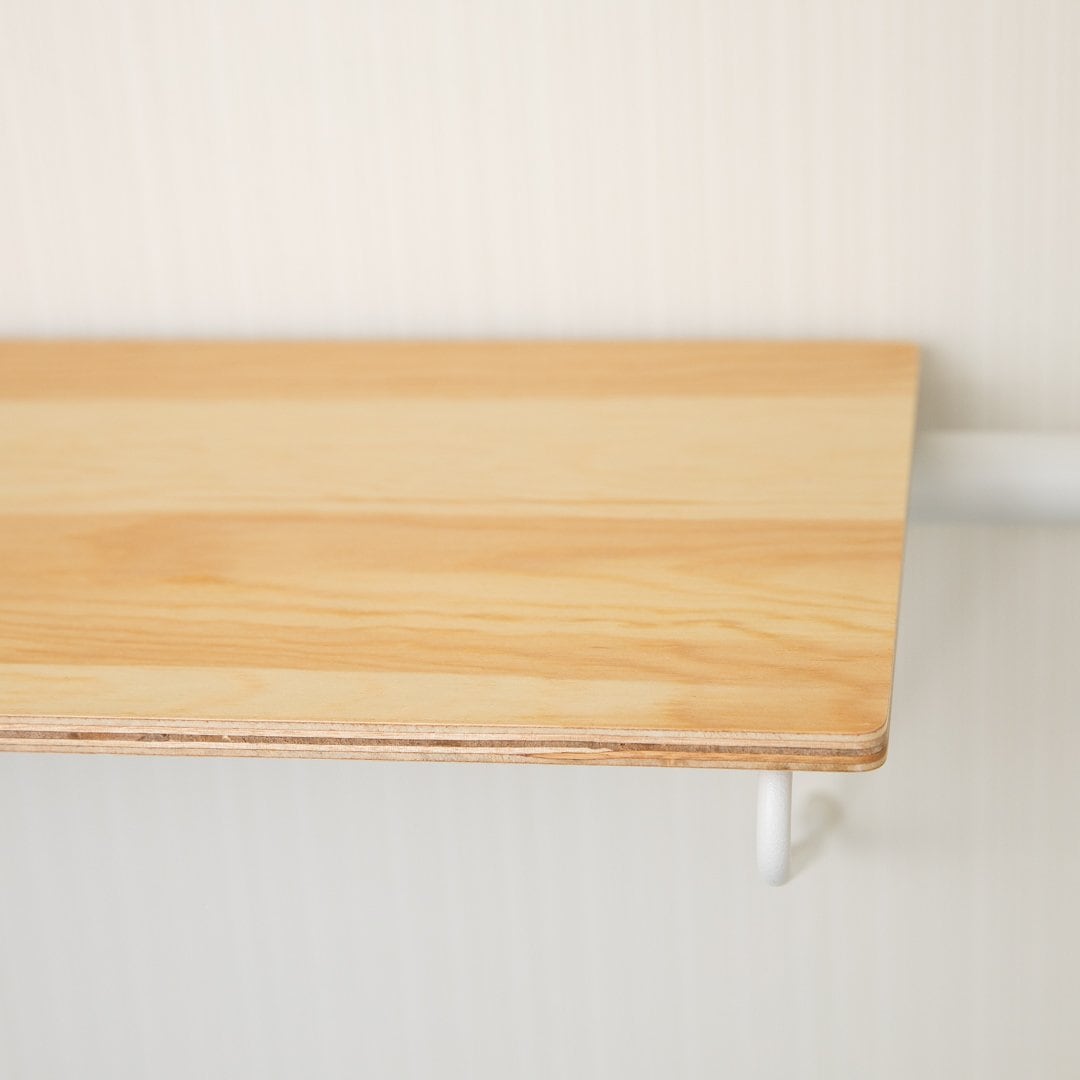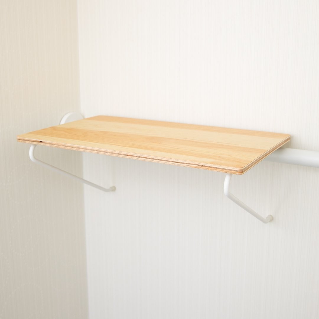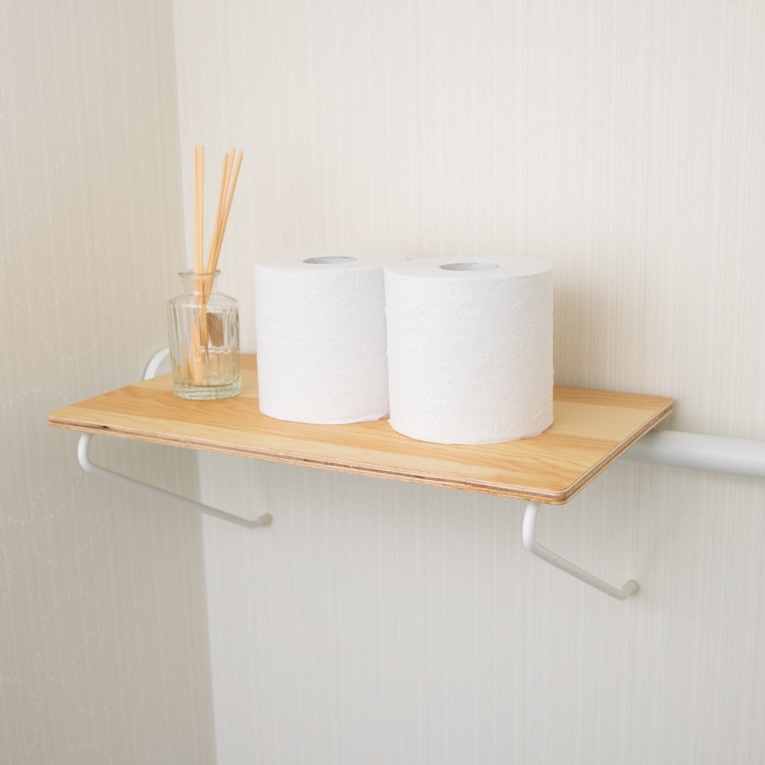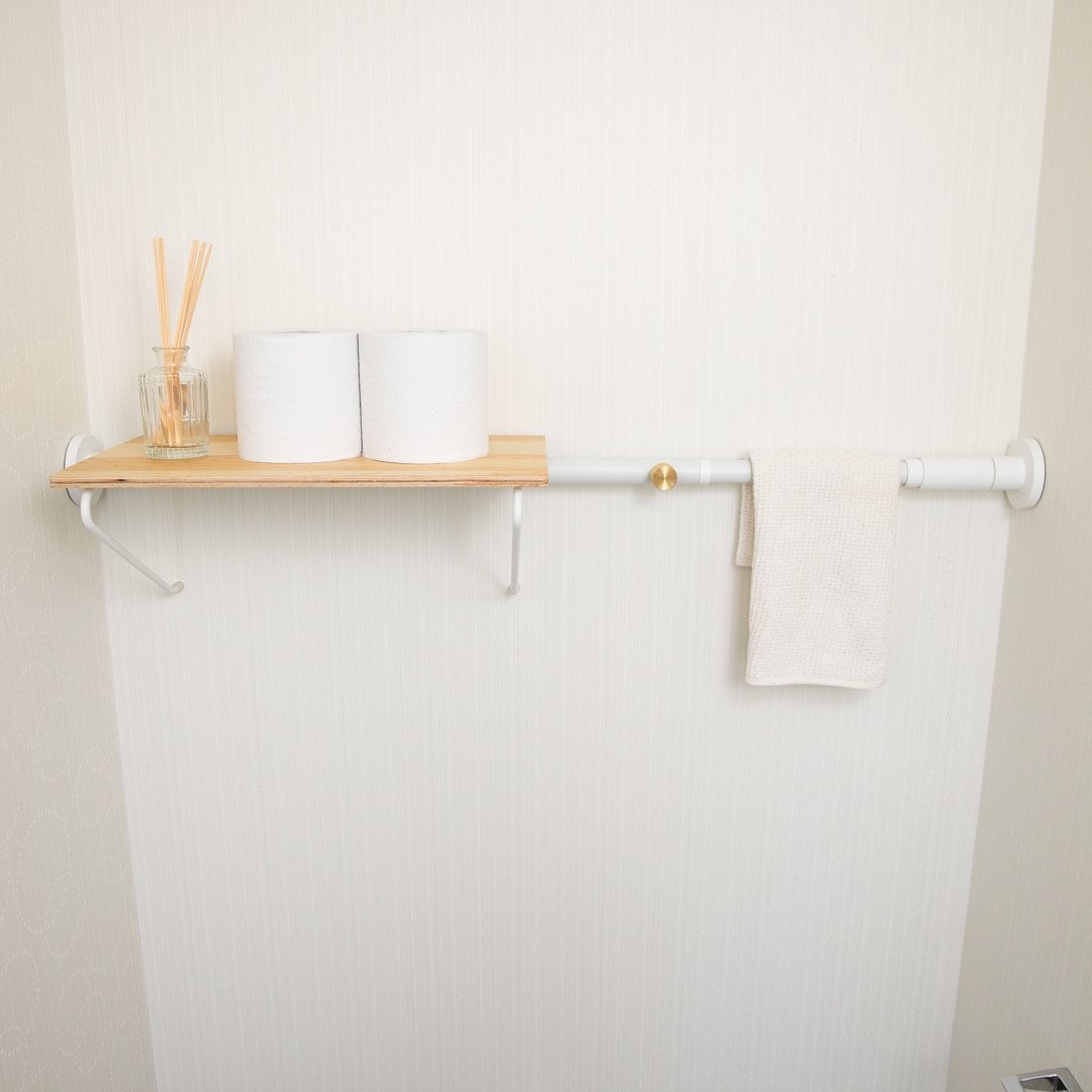 魅せる収納がカンタンに。「DRAW A LINE」シリーズDRAW A LINEは魅せる収納がカンタンにできる魅力的なアイテムが揃っています。ちょっとしたスペースがあれば、壁に穴を開けなくてもお気に入りの空間へと早変わり。キッチンやリビング、洗面所だけでなく、玄関やお部屋の中のデッドスペースが洗練されたオシャレなスペースへと変えられるのは魅力的ですね。テンションロッドを設置して、トレイやシェルフ、フックなどと組み合わせれば、お気に入りのアイテムをディスプレイできますよ。パーツを選び、自分らしい収納をカスタマイズ横方向に取り付ける場合は、シェルフA、シェルフB、マグネット(3個セット)の中からお好きなアクセサリーを選んで組み合わせができます。また、ランプ(007 Lamp A、008 Lamp B ※ブラックのみ)を組み合わせることも可能です。自分らしい収納スぺースをカスタマイズして楽しむ事ができますよ。天然木ならではのナチュラル感シェルフは薄い板を重ねて作られた合板にウレタン塗装が施されています。天然木ならではの自然な手触りと木目がお部屋の中をナチュラルな雰囲気にしれくれます。取り付け方もカンタンで、棚板に付属しているネジでフックを固定するだけ。プラスドライバーさえあれば、誰でもすぐに取り付けられますよ。キッチンやリビング、クローゼットや玄関など、どこでもお使いいただけます。ナチュラルな天然木とマットな質感の金具はどんな雰囲気のインテリアにもしっくりとなじみそうです。タイプは2種類横型つっぱり棒に対し、のせるタイプのシェルフAと吊り下げタイプのシェルフBを組み合わせればば、お好きなものをディスプレイできます。アクセサリーや写真などを置いてみてもいいかも。自分好みのお部屋が実現するのもDRAW A LINEシェルフの魅力。今までデッドスペースだったのが、DRAW A LINEシェルフを使うことで魅力的な空間へと早変わりします。のせるタイプには観葉植物を、吊り下げタイプには靴を…など、ご自分の好みに合わせてお好きなものを置いてみてください。つっぱり棒と組み合わせてオシャレな空間にDRAW A LINEの横型つっぱり棒と組み合わせれば、何気ない空間がおしゃれな空間へと変わります。たとえば、トイレデッドスペースを活かしてつっぱり棒にシェルフを組み合わせることで、収納戸棚に入りきらなかったトイレットペーパーを収納できたりします。また、芳香剤を置いておくのにもピッタリ。玄関に設置すれば、慌ててカバンなど探さなくても、サッと出掛けられますね。また、ハンガーを組み合わせればコート類を掛けておくことも可能です。