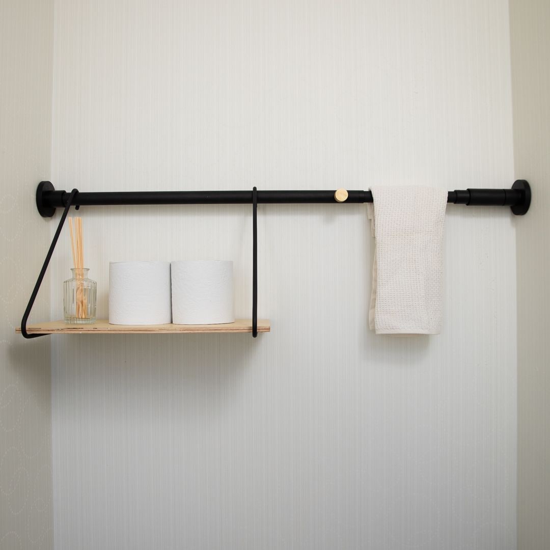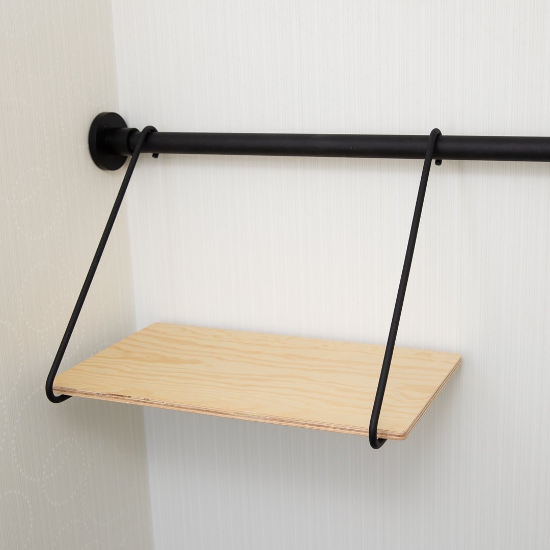 魅せる収納がカンタンに。「DRAW A LINE」シリーズDRAW A LINEは魅せる収納がカンタンにできる魅力的なアイテムが揃っています。ちょっとしたスペースがあれば、壁に穴を開けなくてもお気に入りの空間へと早変わり。キッチンやリビング、洗面所だけでなく、玄関やお部屋の中のデッドスペースが洗練されたオシャレなスペースへと変えられるのは魅力的ですね。テンションロッドを設置して、トレイやシェルフ、フックなどと組み合わせれば、お気に入りのアイテムをディスプレイできますよ。パーツを選び、自分らしい収納をカスタマイズ横方向に取り付ける場合は、シェルフA、シェルフB、マグネット(3個セット)の中からお好きなアクセサリーを選んで組み合わせができます。また、ランプ(007 Lamp A、008 Lamp B ※ブラックのみ)を組み合わせることも可能です。自分らしい収納スぺースをカスタマイズして楽しむ事ができますよ。天然木ならではのナチュラル感シェルフは薄い板を重ねて作られた合板にウレタン塗装が施されています。天然木ならではの自然な手触りと木目がお部屋の中をナチュラルな雰囲気にしれくれます。取り付け方もカンタンで、棚板に付属しているネジでフックを固定するだけ。プラスドライバーさえあれば、誰でもすぐに取り付けられますよ。キッチンやリビング、クローゼットや玄関など、どこでもお使いいただけます。ナチュラルな天然木とマットな質感の金具はどんな雰囲気のインテリアにもしっくりとなじみそうです。タイプは2種類横型つっぱり棒に対し、のせるタイプのシェルフAと吊り下げタイプのシェルフBを組み合わせればば、お好きなものをディスプレイできます。アクセサリーや写真などを置いてみてもいいかも。自分好みのお部屋が実現するのもDRAW A LINEシェルフの魅力。今までデッドスペースだったのが、DRAW A LINEシェルフを使うことで魅力的な空間へと早変わりします。のせるタイプには観葉植物を、吊り下げタイプには靴を…など、ご自分の好みに合わせてお好きなものを置いてみてください。つっぱり棒と組み合わせてオシャレな空間にDRAW A LINEの横型つっぱり棒と組み合わせれば、何気ない空間がおしゃれな空間へと変わります。たとえば、トイレデッドスペースを活かしてつっぱり棒にシェルフを組み合わせることで、収納戸棚に入りきらなかったトイレットペーパーを収納できたりします。また、芳香剤を置いておくのにもピッタリ。玄関に設置すれば、慌ててカバンなど探さなくても、サッと出掛けられますね。また、ハンガーを組み合わせればコート類を掛けておくことも可能です。