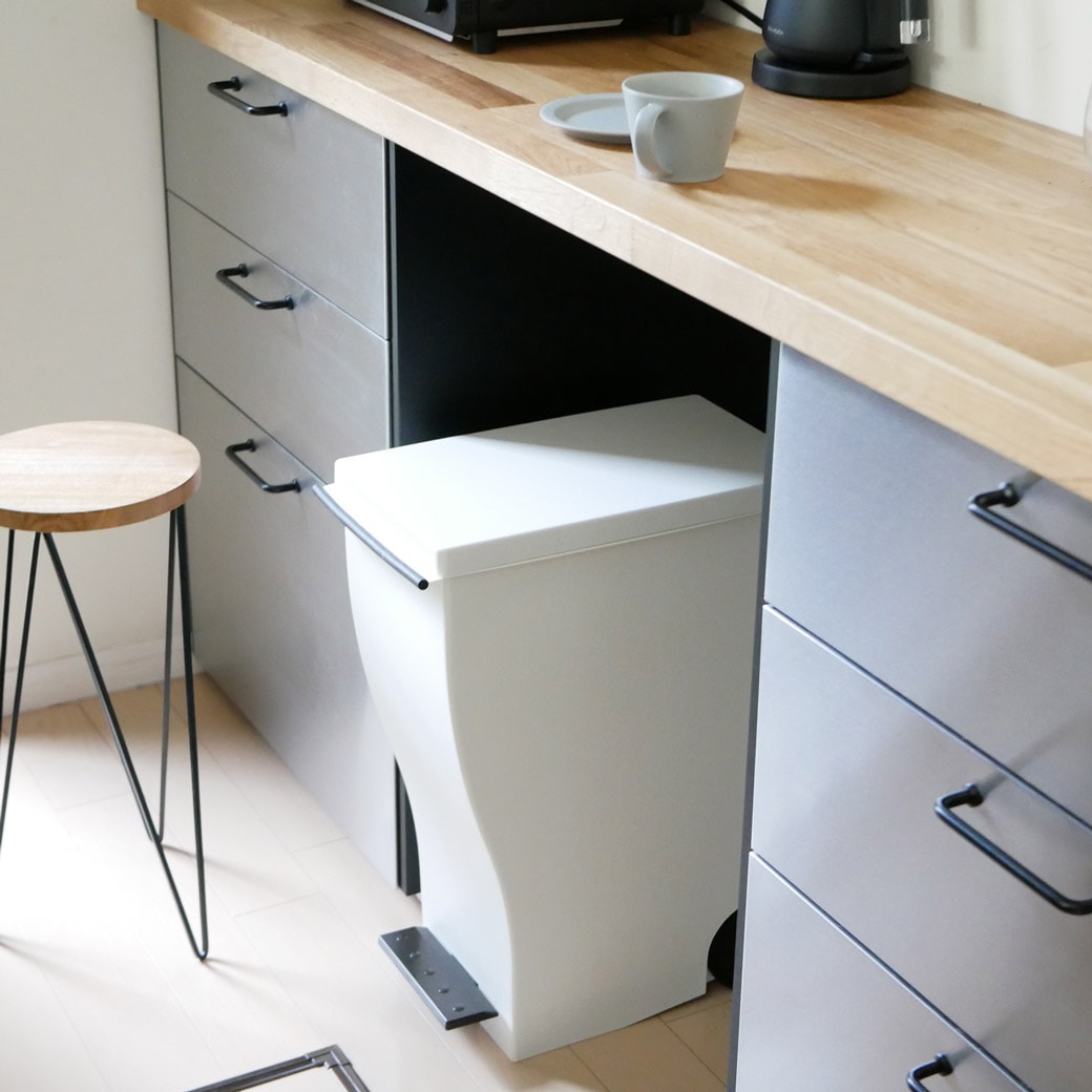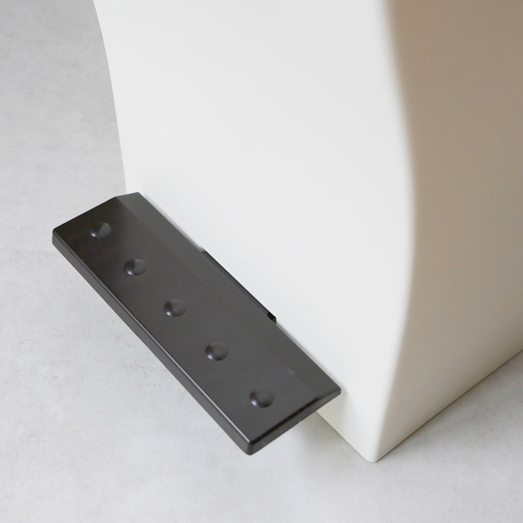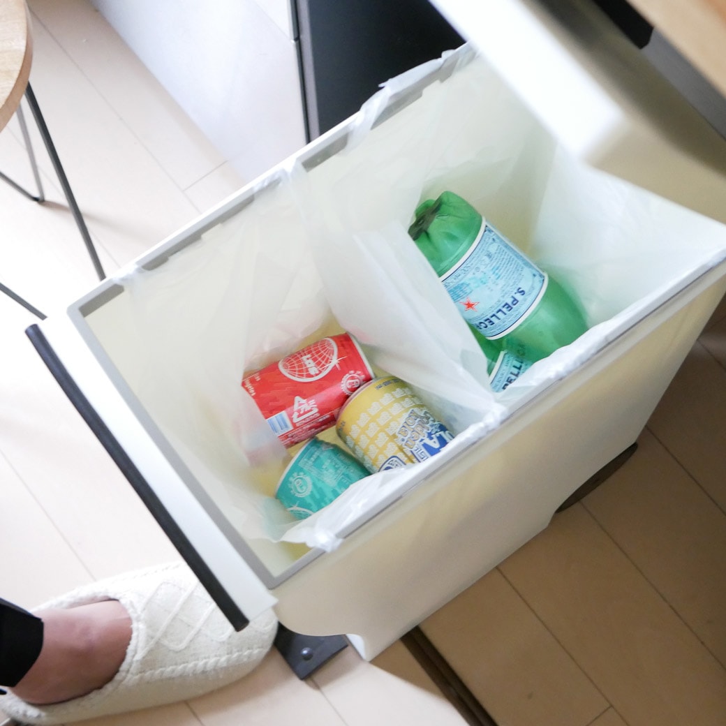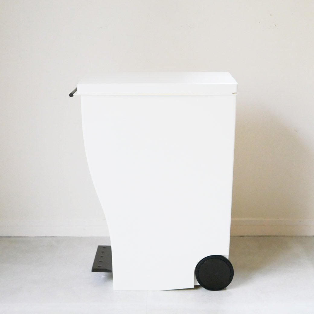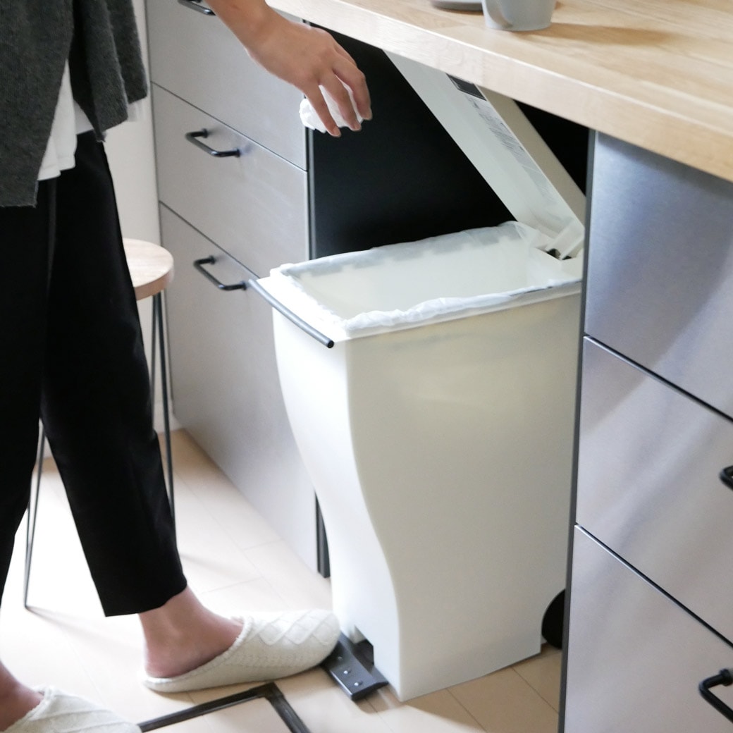 ワイドなペダルと、スリムなサイズ ペダルはワイドで踏みやすく、サイズはとことんスリム。なゴミ箱です。ペダルを踏んでフタを開けるタイプのゴミ箱は、踏みやすさが命。こちらのゴミ箱はペダルの幅が広いので確実にフタを開けることができます。ペダルを踏むとフタが開き、離すと閉まるので手を使うこともなく、生ゴミのニオイも抑えてくれます。大容量の1枚でも、レジ袋2枚でも ゴミ箱には大容量のポリ袋1枚をセットできるほか、レジ袋を2枚セットしてゴミを仕分けることもできます。燃えるゴミ、燃えないゴミ。あるいはプラスチック製品やビン・カンなど、細かい分別をするにも便利ですね。キャスター付きなので移動させたいときもスムーズです。