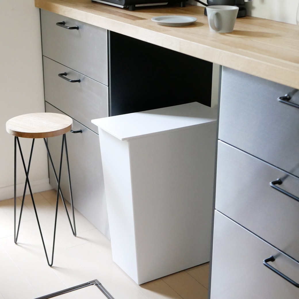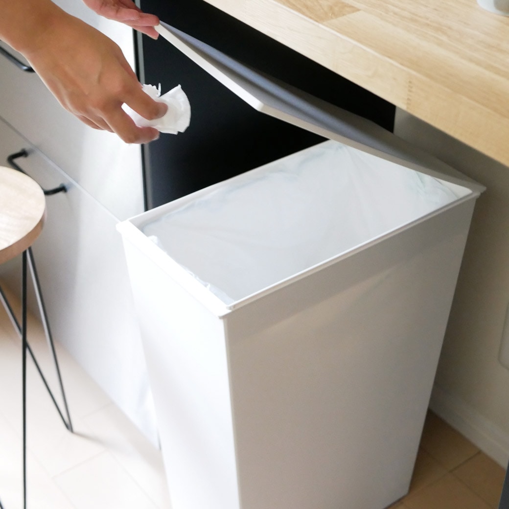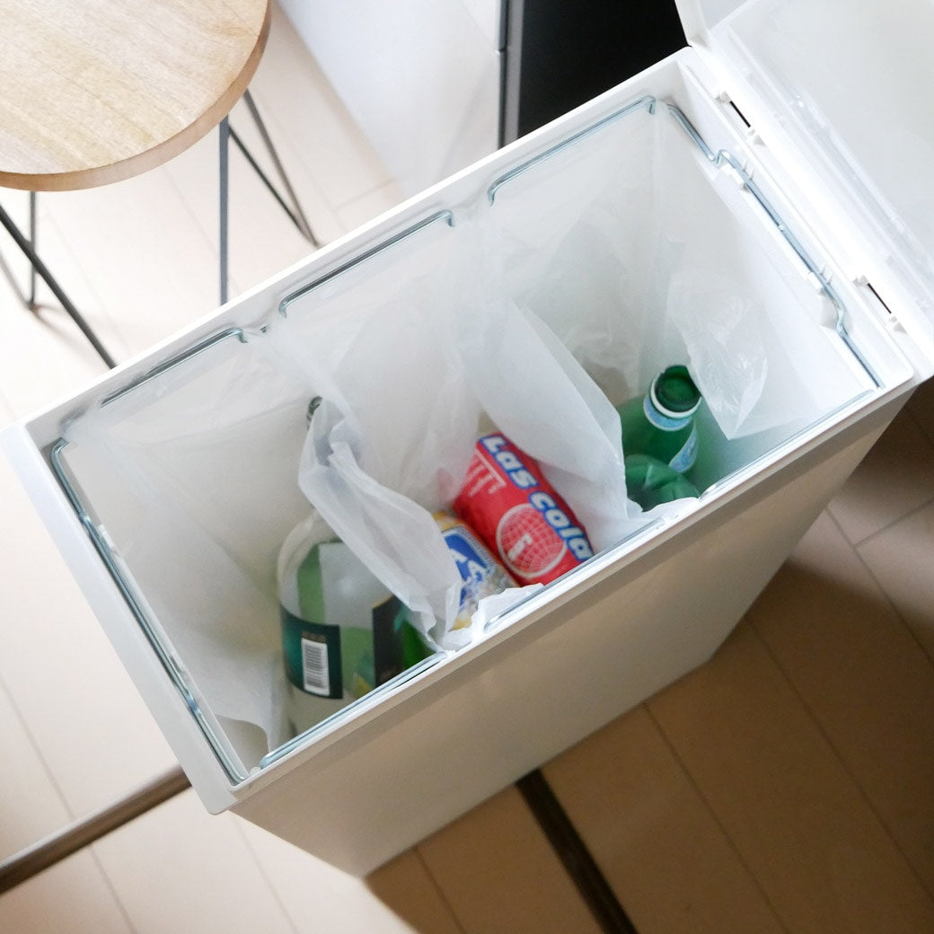 たどりついた究極のシンプル&スリム モダンでおしゃれな印象のゴミ箱です。特徴的なのは、とことん無駄な要素をとりのぞいたシンプルさとスリムなフォルム。底面にキャスターが付いているものの、まったく目立たないので、一見すると「本当にゴミ箱?」と疑ってしまうかも…。角型なので壁にそわせてもピッタリ配置でき、複数使いしてもスマートです。ゴミの複数分別も簡単。ワイヤーフレームには凹凸があるので、複数のビニール袋を分けてかけられます。だから、細かなゴミの分別がしたいときも簡単。自宅のゴミの量や分けたい種類に応じて、使い方を選べるところがうれしいですね。