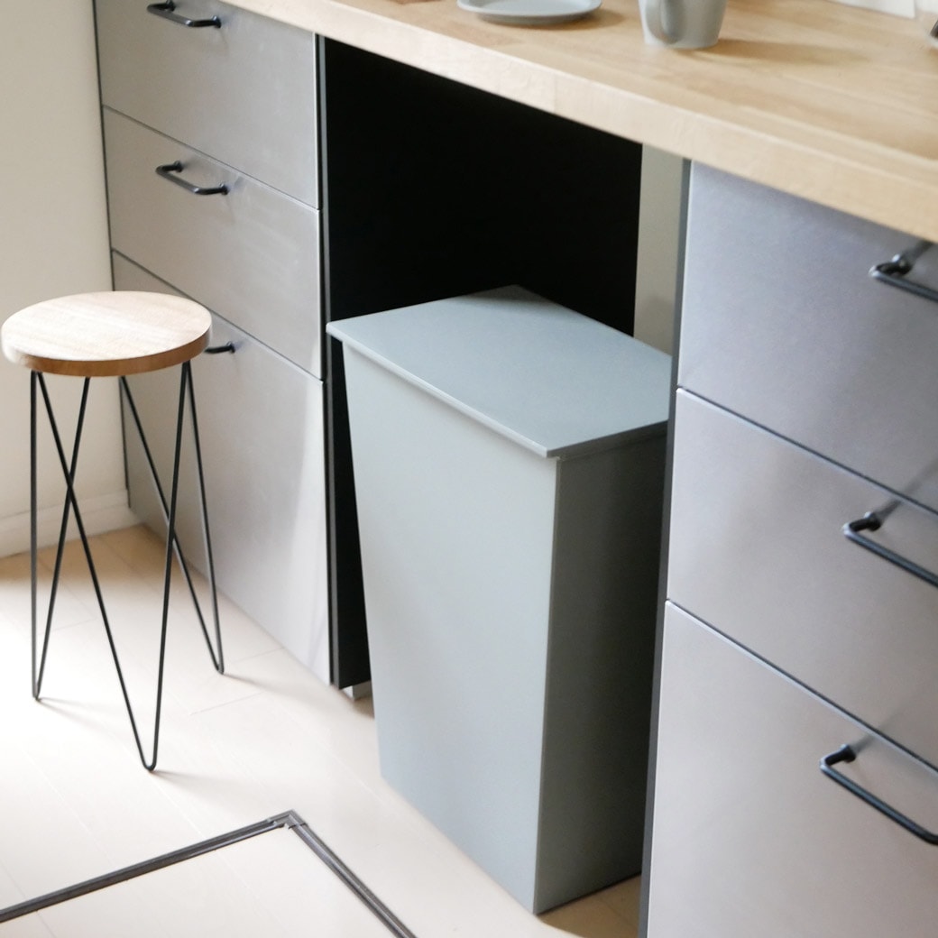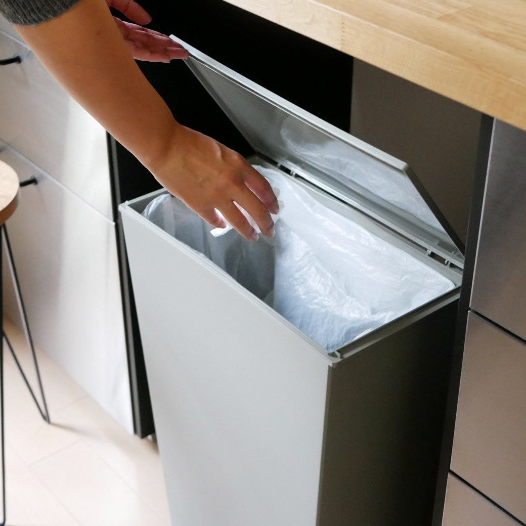 たどりついた究極のシンプル&スリム モダンでおしゃれな印象のゴミ箱です。特徴的なのは、とことん無駄な要素をとりのぞいたシンプルさとスリムなフォルム。底面にキャスターが付いているものの、まったく目立たないので、一見すると「本当にゴミ箱?」と疑ってしまうかも…。角型なので壁にそわせてもピッタリ配置でき、複数使いしてもスマートです。ゴミの複数分別も簡単。ワイヤーフレームには凹凸があるので、複数のビニール袋を分けてかけられます。だから、細かなゴミの分別がしたいときも簡単。自宅のゴミの量や分けたい種類に応じて、使い方を選べるところがうれしいですね。