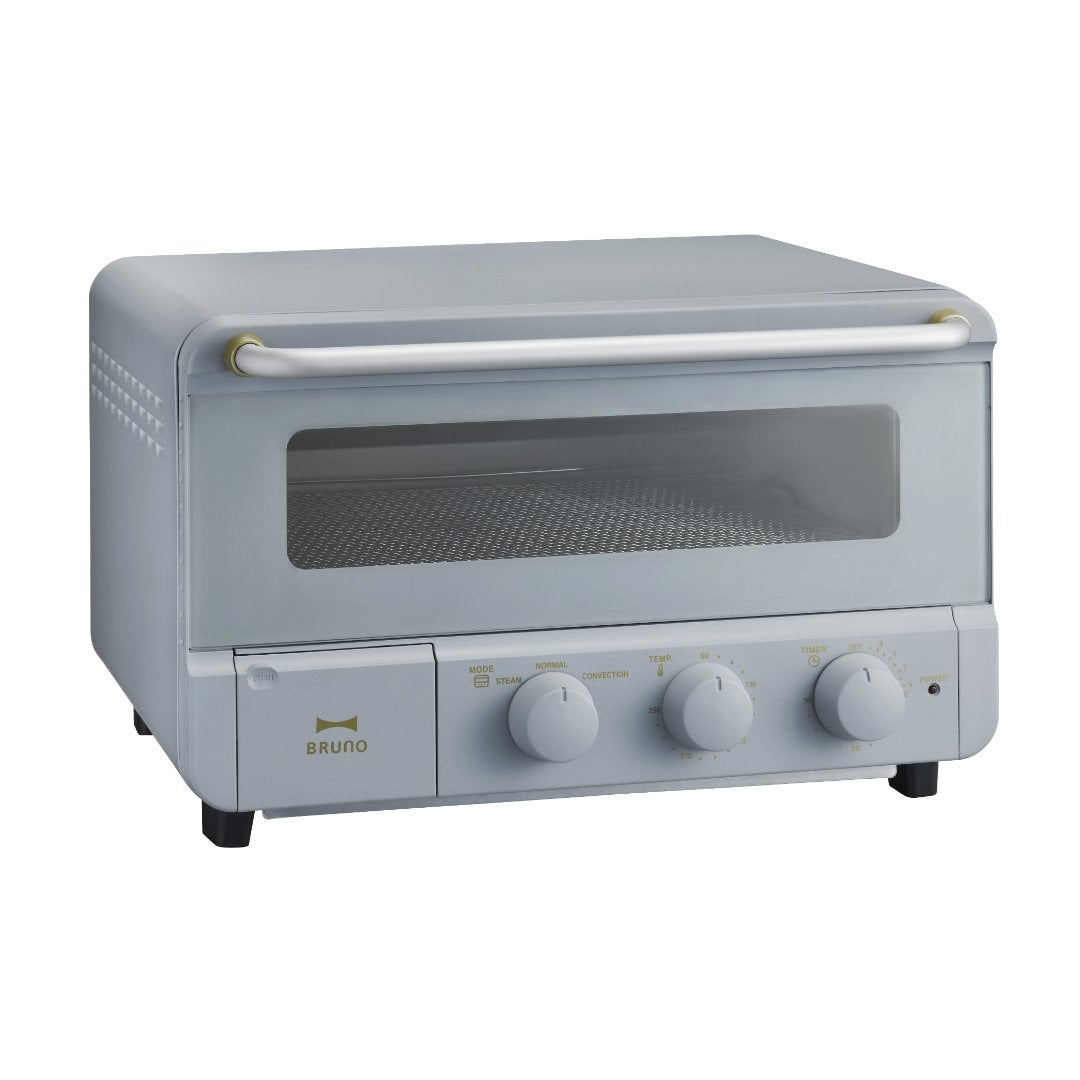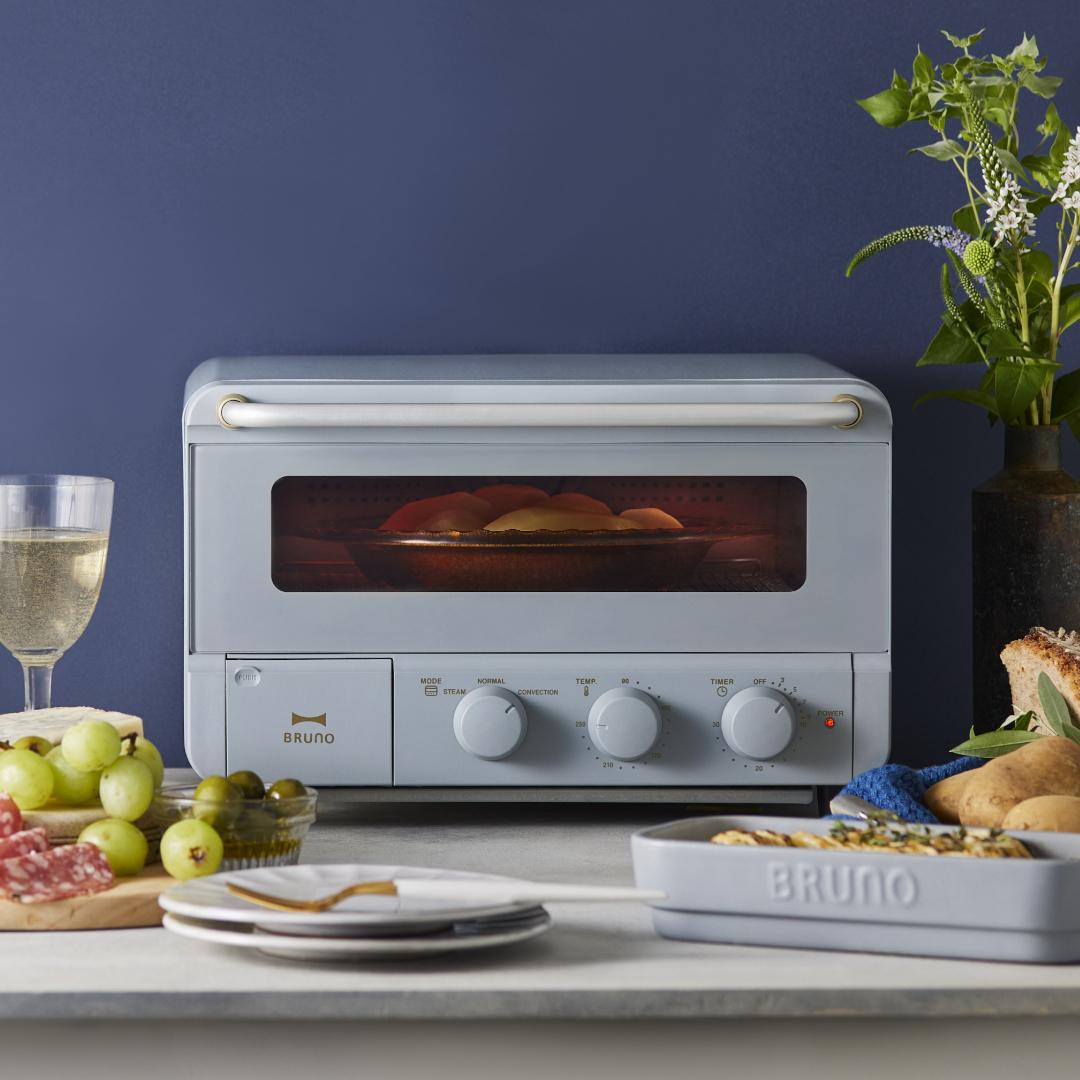 お洒落なだけじゃない。美味しい料理も作れる実用性抜群のトースターBURUNOが販売しているスチーム&ベイク トースター ブルーグレーは、デザイン性と実用性を兼ね備えたトースターです。最大の特徴は、コンパクトサイズ(横幅350mm×高さ225mm×奥行370mm)にもかかわらず、食パン4枚を同時に焼けること。焼時間は食パン1枚で2分、食パン4枚で4分しかかかりません。ピザやグラタンに焼き色を付けるノーマルモード、食パンを外はカリっと中はふんわり焼き上げるスチームモード、肉や魚の旨味を閉じ込めて仕上げるコンベクションモードを搭載している点も魅力です。庫内の温度は90~250度、調理時間は1~30分の間でダイヤルを使って調整できます。スチーム&ベイク トースター ブルーグレーで美味しい料理を作ってみませんか。
