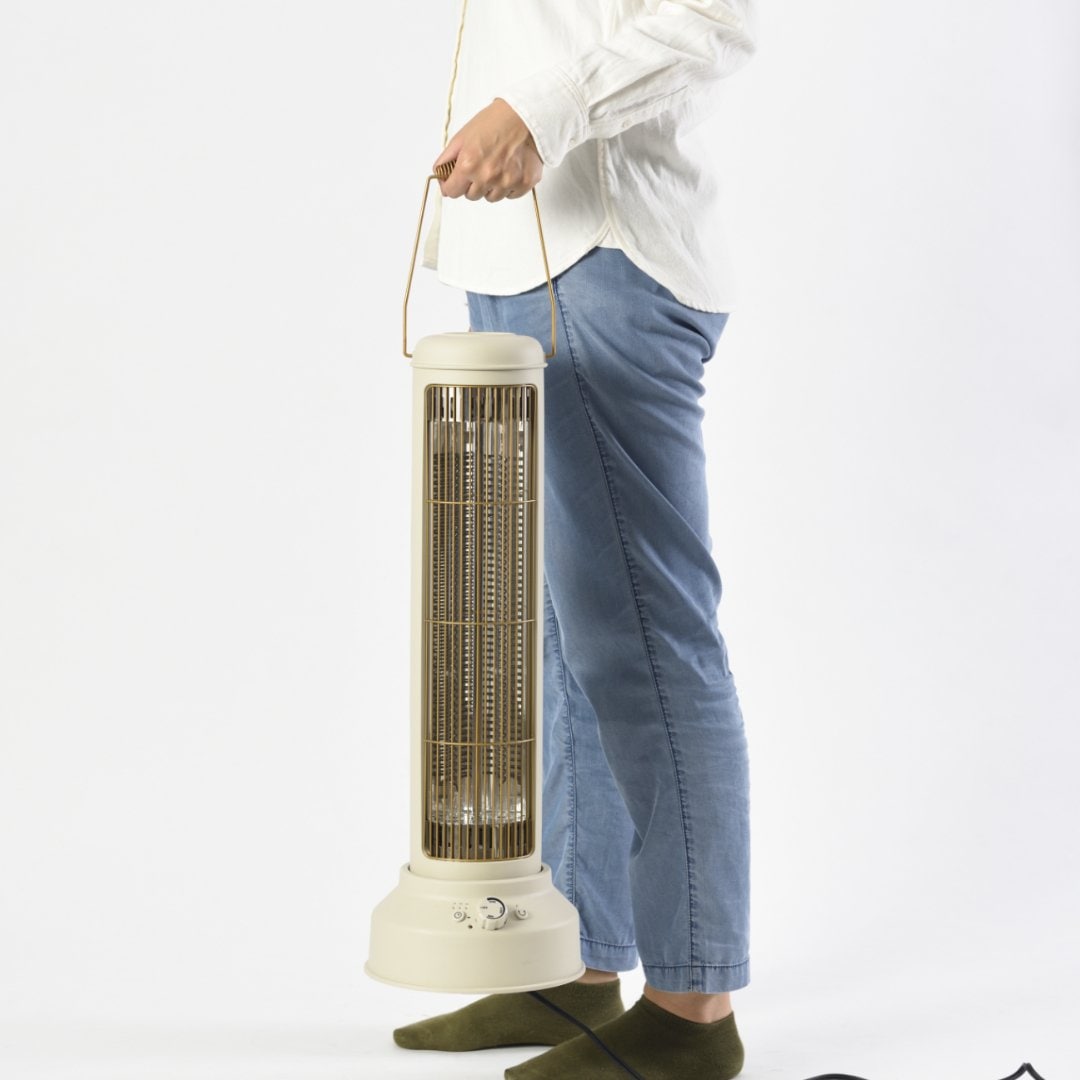寒い冬も暖かく過ごせるレトロデザインのカーボンヒーター ノスタルストーブがリニューアルして登場。レトロなデザインとパワフルさはそのままに、機能性をグレードアップしました。首振り機能を新たに搭載したことにより、ストーブに当たっている面がピンポイントで熱くなることがなく、身体全体を芯から温めることができます。パワーはダイヤルを回して無段階に調整可能。室温や体感温度によって出力を微調整できるので便利です。静音設計を採用しているため、前回モデルと比べて稼働音も気にならなくなりました。高さはあるもののスリムなデザインなので、圧迫感なく置けるのも魅力です。取っ手が付いているから、キッチンや脱衣所など好きな場所に持ち運んで使えます。今年の冬は、レトロテイストなヒーターを迎えてほっこりと暖かく過ごしてみませんか? レトロなデザインにぴったりの3種類のカラー カラーバリエーションは、グラスグリーン・グレージュ・ブルーグレーの3種類です。お部屋の雰囲気を邪魔しない優しい色合いで、どんな空間にも自然となじみます。