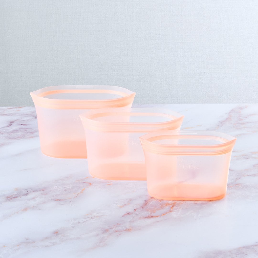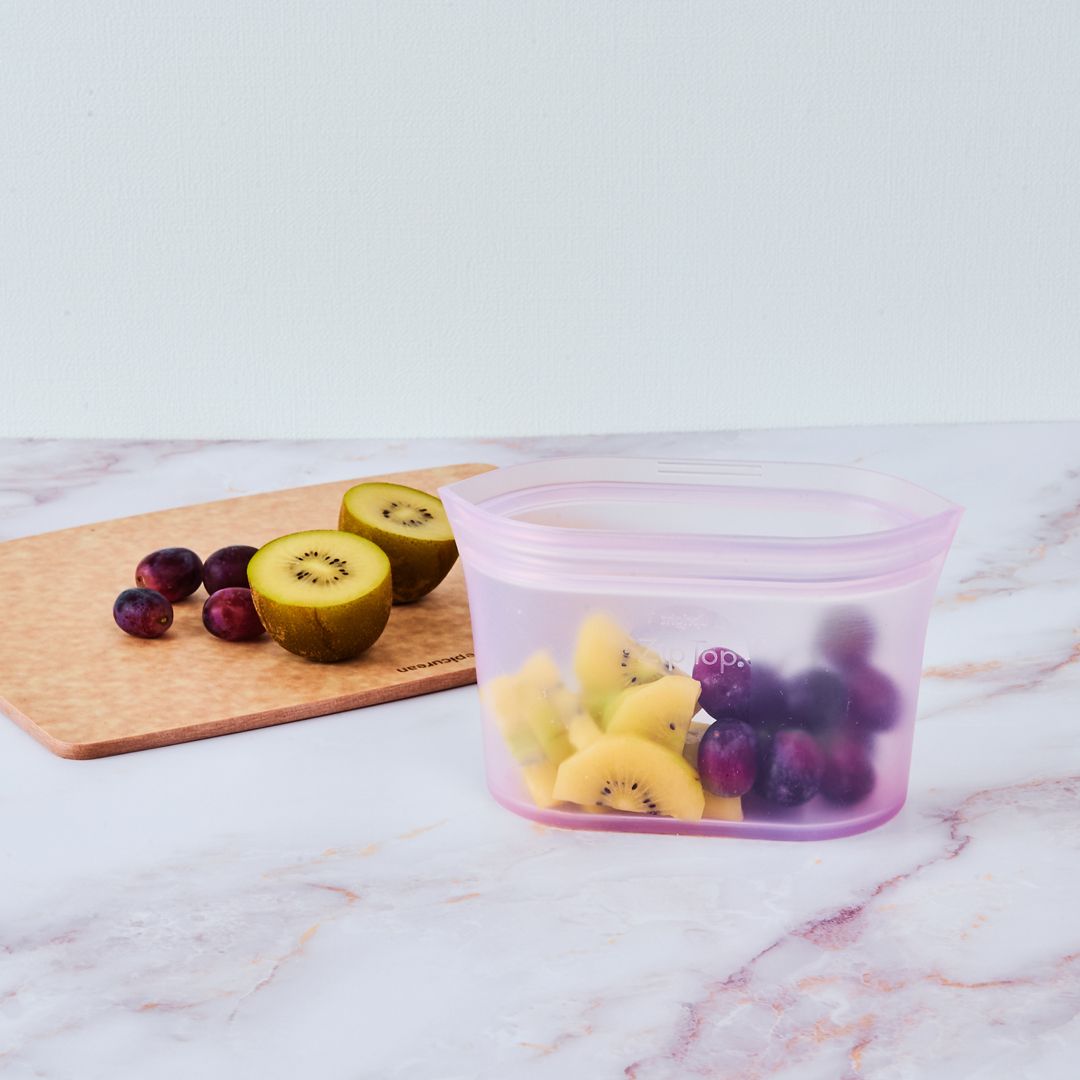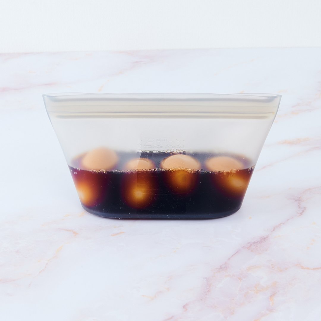 洗って繰り返し使える、ジップトップ 耐久性が高く繰り返し使えるシリコンバッグです。ディッシュシリーズは容器の口が広いので、食材を入れやすく混ぜやすいのが特徴。電子レンジ対応なので、作り置きのおかずやスープもジップトップに入れたまま温められます。好みに合わせえて選べる、5色のカラーバリエーション カラーは、スタイリッシュなグレー、明るくクリアな印象のフロスト、女性的なラベンダー、爽やかなティール、温かみがありかわいいピーチをご用意しました。好みのカラーをセレクトするのも、色違いで複数個揃えて、食材・料理ごとに使い分けるのもおすすめです。じっくりしみた味付け卵の調理に。ディッシュ S ゆで卵と調味料を入れて味付け卵を作るのにちょうどいいサイズ感です。ランチボックス代わりに使ったり、食べかけのお菓子やナッツの保存にも活躍。食材の保存や調理以外の用途にも。イヤリングやネックレスなどのアクセサリー、旅行の際のバスグッズやスマートフォンの充電器を入れるのにも活躍します。蒸し野菜も電子レンジで簡単調理。湯せんも対応可能 煮物などの温菜なら電子レンジはもちろん、湯せんでの温めもOK。火が通りにくいじゃがいもなどの根菜も、少量の水と一緒に電子レンジにかければホクホクの蒸し野菜があっという間に完成。冷蔵庫に入れておいたスープも、ジップトップごと温めておいしく味わっていただけます。ゴミを減らしたい。環境にも健康にもやさしく 使い捨てることなく洗って何度でも使えるシリコンバッグです。ゴミを減らすため環境に配慮して作られました。このジップトップは100%プラチナシリコン製で、プラスチックと違い、燃やしても有害ガスやダイオキシンが発生しない素材です。一世帯で年間平均2000枚消費されているというプラスチックバッグが一つのジップトップに変われば、地球環境がぐっと良くなるのではないでしょうか。
