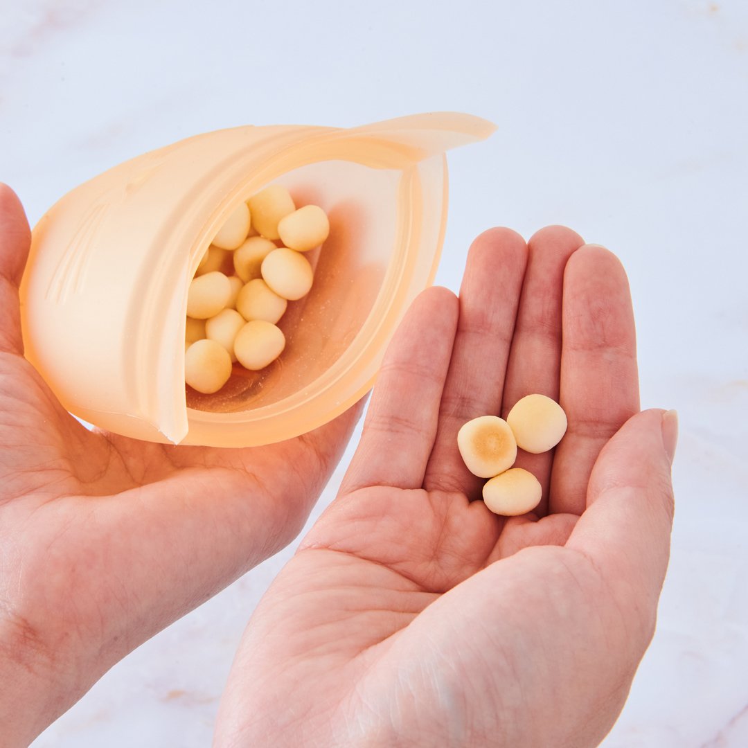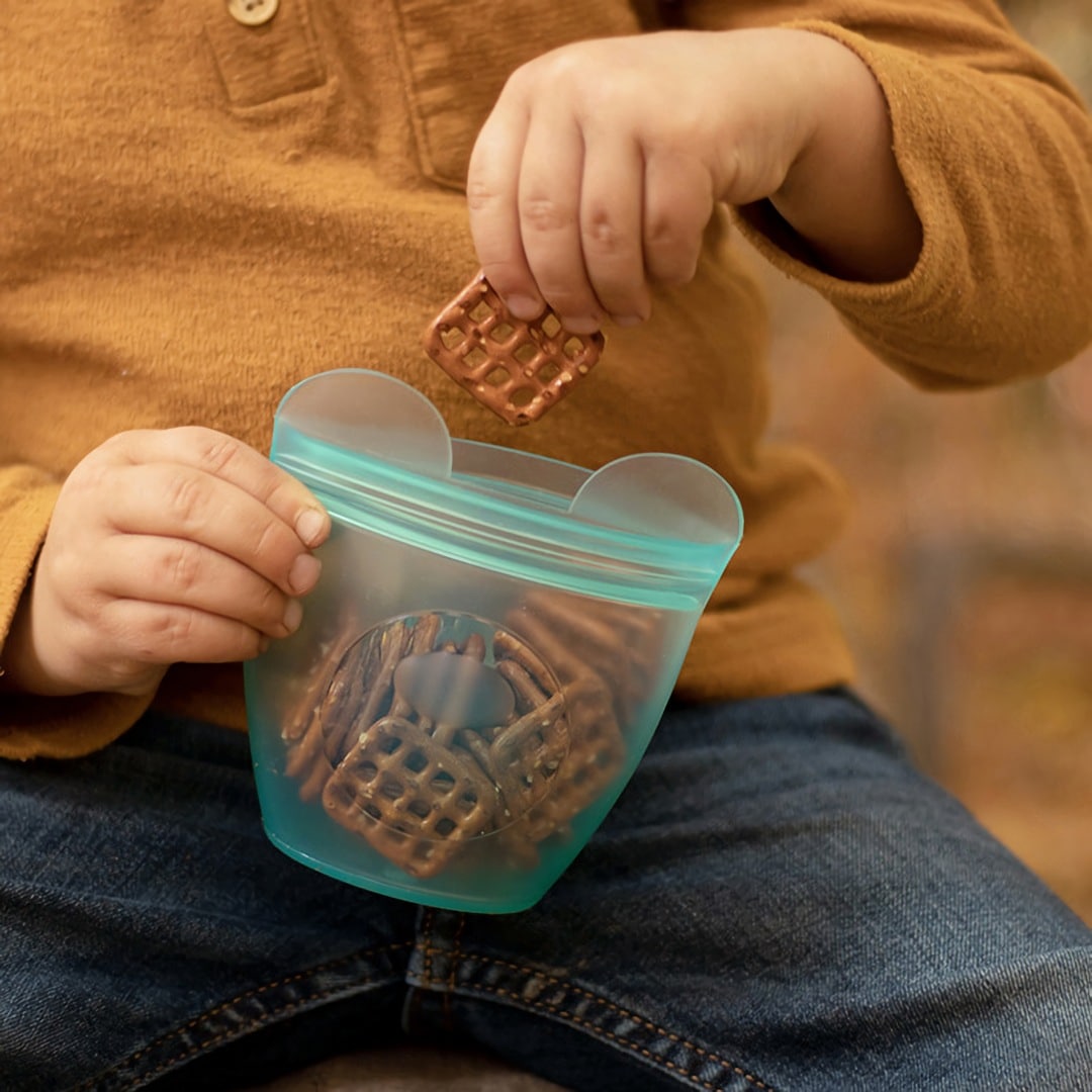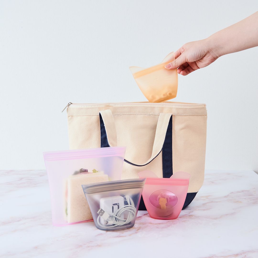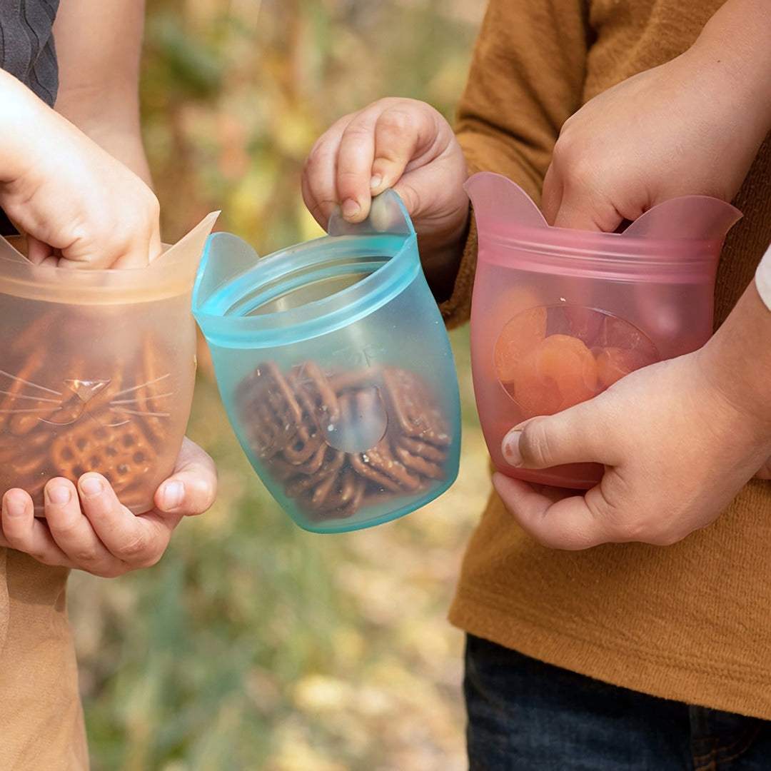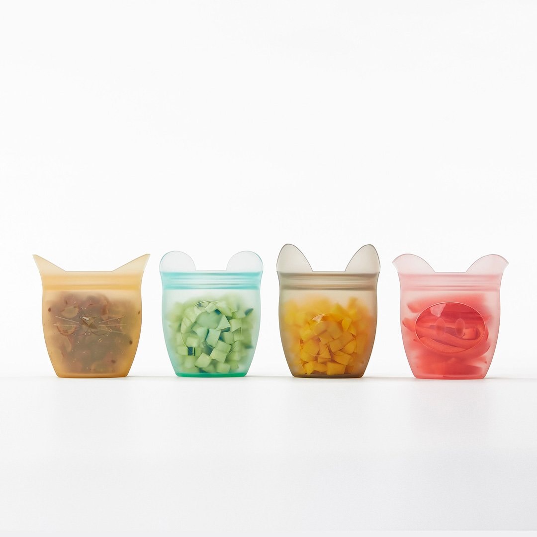 洗って繰り返し使える、ジップトップ 耐久性が高く繰り返し使えるシリコンバッグです。お子様のお菓子の保存やおしゃぶりケースとしてもぴったりなサイズ感です。動物モチーフがかわいい4種類のデザイン キャット、ドッグ、ピッグ、ベアーの形の4種類でそれぞれ形に合わせてカラーも異なります。お菓子の種類などで使い分けしてもかわいいですね。かわいいだけじゃない。こだわりのデザインと素材 子どもが握っても中身が飛び出しにくい設計になっているため、自分で持たせても安心。また、BPA・鉛・フタル酸エステル・PVC不使用なのでアレルギーを引き起こしにくい素材なのもこだわりのポイントです。蒸し野菜も電子レンジで簡単調理。湯せんも対応可能 子どもの離乳食を入れて保存し、そのままレンジや湯煎対応が可能なので作り置きにも便利。さつまいもを小さくカットし、レンジであたためれば簡単におやつもできちゃいます。ゴミを減らしたい。環境にも健康にもやさしく 使い捨てることなく洗って何度でも使えるシリコンバッグです。ゴミを減らすため環境に配慮して作られました。このジップトップは100%プラチナシリコン製で、プラスチックと違い、燃やしても有害ガスやダイオキシンが発生しない素材です。一世帯で年間平均2000枚消費されているというプラスチックバッグが一つのジップトップに変われば、地球環境がぐっと良くなるのではないでしょうか。