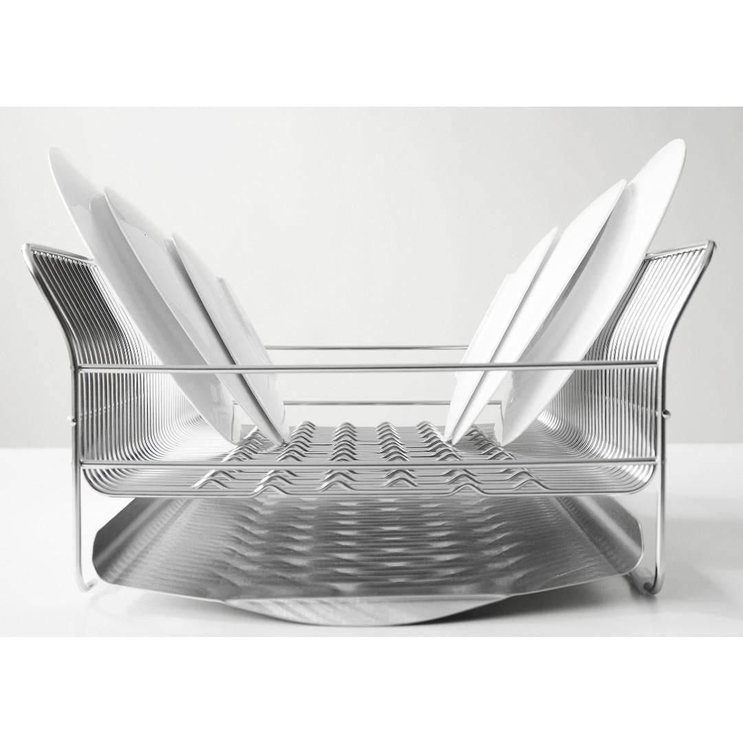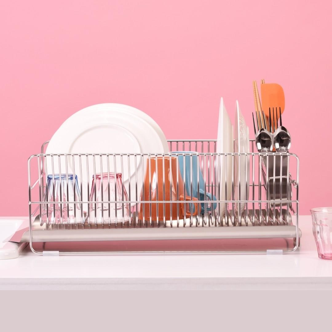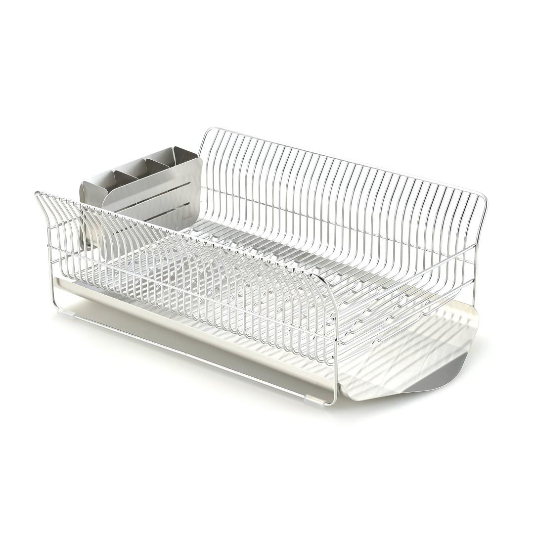 洗い終わった食器を水切りラックに置くとき、お皿を立てても滑ってしまったり、重なってしまい取り出す時にがちゃがちゃと音がなってしまったりと多少のストレスを感じることはあるもの。ビーワーススタイルの『hanauta』シリーズの水切りラックはそんなストレスを軽減できるようたくさんの工夫をされた水切りラックです。職人さんが一点一点丁寧につくられているので、細かいパーツや、磨き部分までこだわった水切りラックをご紹介します。カラーバリエーションはスタイリッシュなステンレスらしさを感じるシルバーと、上品な美しさを醸し出すローズゴールドの2色。キッチンの雰囲気に合わせて選べます。※こちらは『水切りラック横置き シルバー』のページとなり、色違いのローズゴールドは別ページより購入が可能です。お皿を置くときにすべらないポイントがビーワース独自の『たてよこウェーブ』。8cm間隔で並んでいる波型ワイヤーがどの向きに食器を置いても安定してくれます。さらに、鳥の羽のように湾曲した背もたれに立てかければしっかりホールドしてくれ、食器のサイズや置く場所を考えず適当に入れてもスッキリ納まるところがストレス軽減につながります。シンク横の形状やスペース、置く場所に合わせて水切りの位置を選びたいもの。Hanautaの水切りラックの形状は3タイプあり、ラックの横から水切りをする「横置き」、広い面から水切りをする「縦置き」、シンク横の狭いスペースでも置きやすい「縦置きロング」があります。水切りトレイも職人さんの丁寧な作業により、スルスルと水が流れやすいよう一つ一つ磨きあげられています。形状は設置場所にあわせて選んでみて下さい。水切りラックに合わせて、ステンレスのシルバー、ローズゴールドの素材に合わせた箸立てがセットに。ユーザーさんからの意見をもとに改良された箸立ては、工夫がたくさん。箸が水切り穴から飛び出してしまうことから隙間を減らし、仕分けを多くすることで、箸、スプーン、フォークなど細かく分けることができます。また、箸立て単体で使用できるように、箸立てにもシリコーンゴムの脚がついています。