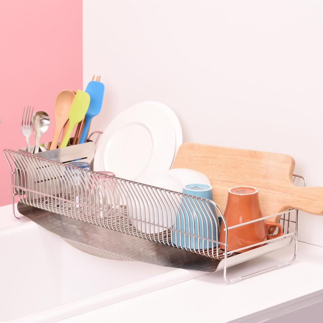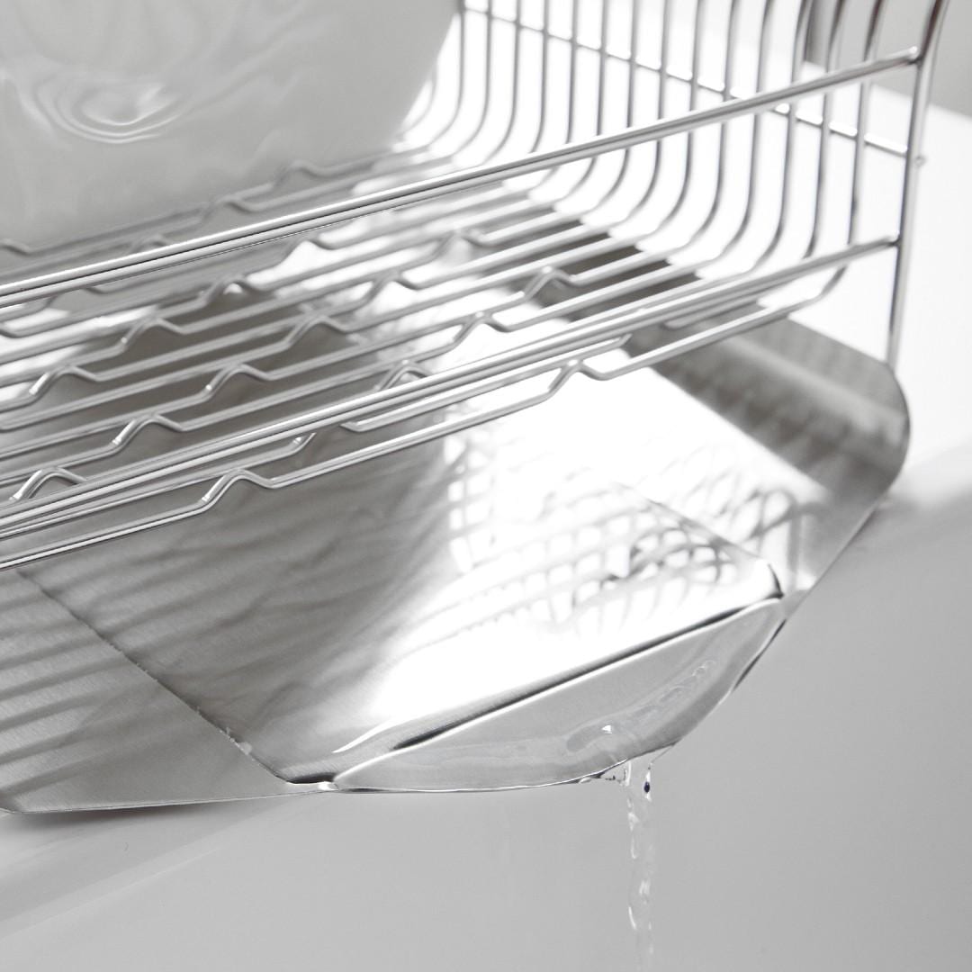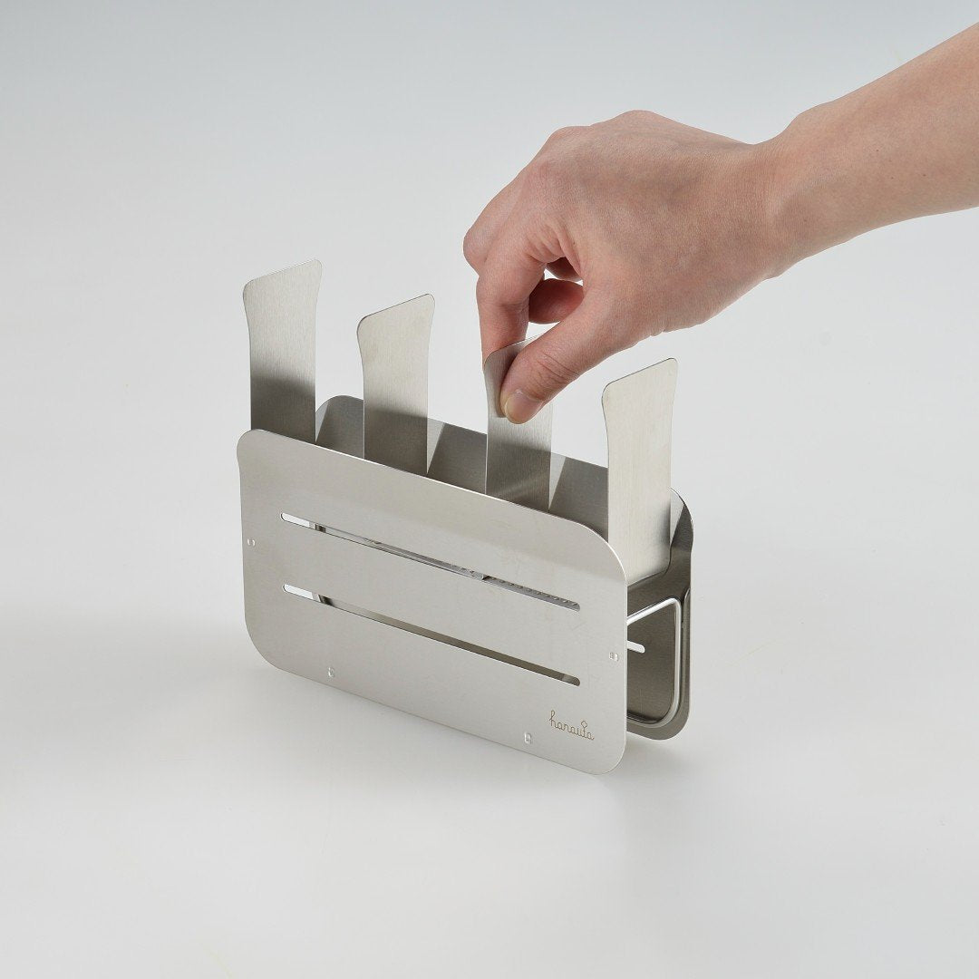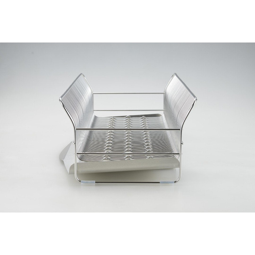キッチンに水切りラックを置くにもスペースが限られてしまうもの。こちらの水切りラックはスリムでロングタイプなので、シンク横のスペ―スが狭い方におすすめです。他にはない特徴的なデザインと、職人さんが一点一点丁寧につくられているので、細かいパーツや、磨き部分までこだわったビーワーススタイルの水切りラックの特徴をご紹介します。カラーバリエーションはスタイリッシュなステンレスらしさを感じるシルバーと、上品な美しさを醸し出すローズゴールドの2色。キッチンの雰囲気に合わせて選べます。※こちらは『水切りラック縦置きロング シルバー』のページとなり、色違いのローズゴールドは別ページより購入が可能です。お皿を置くときにすべらないポイントがビーワース独自の『たてよこウェーブ』。8cm間隔で並んでいる波型ワイヤーがどの向きに食器を置いても安定してくれます。さらに、鳥の羽のように湾曲した背もたれに立てかければしっかりホールドしてくれ、食器のサイズや置く場所を考えず適当に入れてもスッキリ納まるところがストレス軽減につながります。シンク横の形状やスペース、置く場所に合わせて水切りの位置を選びたいもの。Hanautaの水切りラックの形状は3タイプあり、ラックの横から水切りをする「横置き」、広い面から水切りをする「縦置き」、シンク横の狭いスペースでも置きやすい「縦置きロング」があります。水切りトレイも職人さんの丁寧な作業により、スルスルと水が流れやすいよう一つ一つ磨きあげられています。形状は設置場所にあわせて選んでみて下さい。水切りラックに合わせて、ステンレスのシルバー、ローズゴールドの素材に合わせた箸立てがセットに。ユーザーさんからの意見をもとに改良された箸立ては、工夫がたくさん。箸が水切り穴から飛び出してしまうことから隙間を減らし、仕分けを多くすることで、箸、スプーン、フォークなど細かく分けることができます。また、箸立て単体で使用できるように、箸立てにもシリコーンゴムの脚がついています。