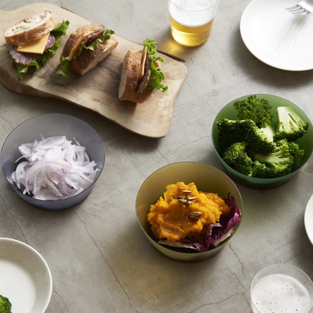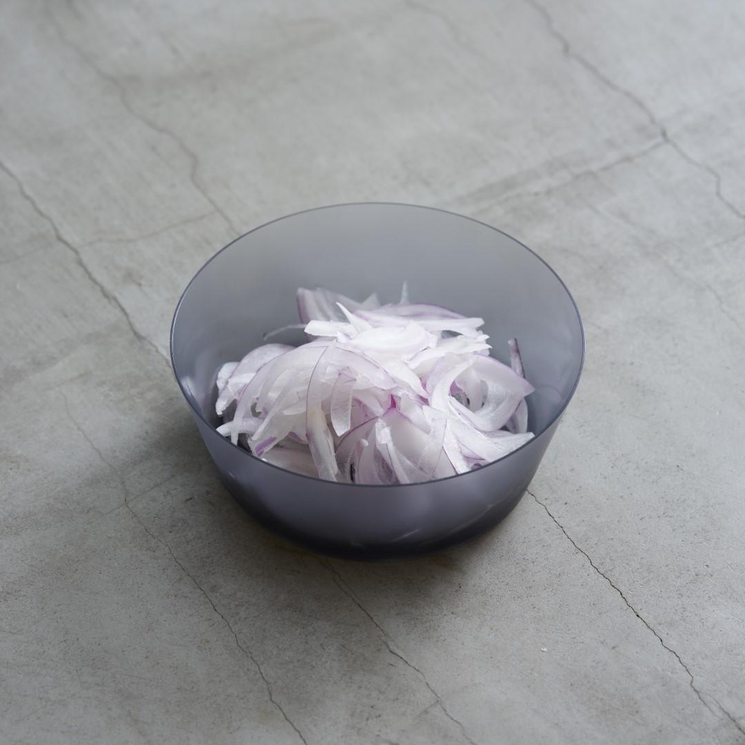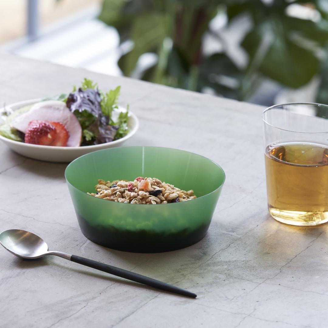 使い勝手の良さを追求した器 食事時に使う食器としても、食材の保管容器としても使える多機能な器です。シンプルでスタイリッシュなフォルムは食卓にもピッタリで華やかないろどりを加えます。電子レンジ対応で使い勝手抜群です。用途に応じて使い分けられる、4色のカラーバリエーション カラーは、透明感の強いクリア、爽やかなグリーン、スタイリッシュなグレー、ポジティブなイエローをご用意しました。下ごしらえ済みの食材、作り置き、残り物おかずなど、保存する中身によって色別で使い分けるのもおすすめです。ピタッと密着。フラットなシリコーン蓋 シリコーン蓋は器にのせるだけでしっかりと密着します。フラットなフォルムは洗いやすく、凹凸が無いので冷蔵庫の中でスタッキングも可能です。クッキーやドーナツなど食卓に出しっぱなしにしておきたいお菓子も、シリコーン蓋がホコリからカバーします。汚れ落ちスッキリで衛生的に 器は汚れ落ちが良く、色移りのしにくい樹脂(ポリメチルペンテン)で作られています。油汚れもスッキリと落ちやすくお手入れがしやすいです。カレー、ビーフシチューをはじめ、ミネストローネやミートソースなどトマト系のソースにも安心して使えます。マイクロ波の透過率が高く、電子レンジ調理を効率的に マイクロ波を通しやすいため、電子レンジで効率的に食品を温められるのがうれしいところ。器のせいで食べ物の中心が温めたりないなんてこともなくなります。また熱伝導率が低く、器が熱くなりにくいのが特徴です。