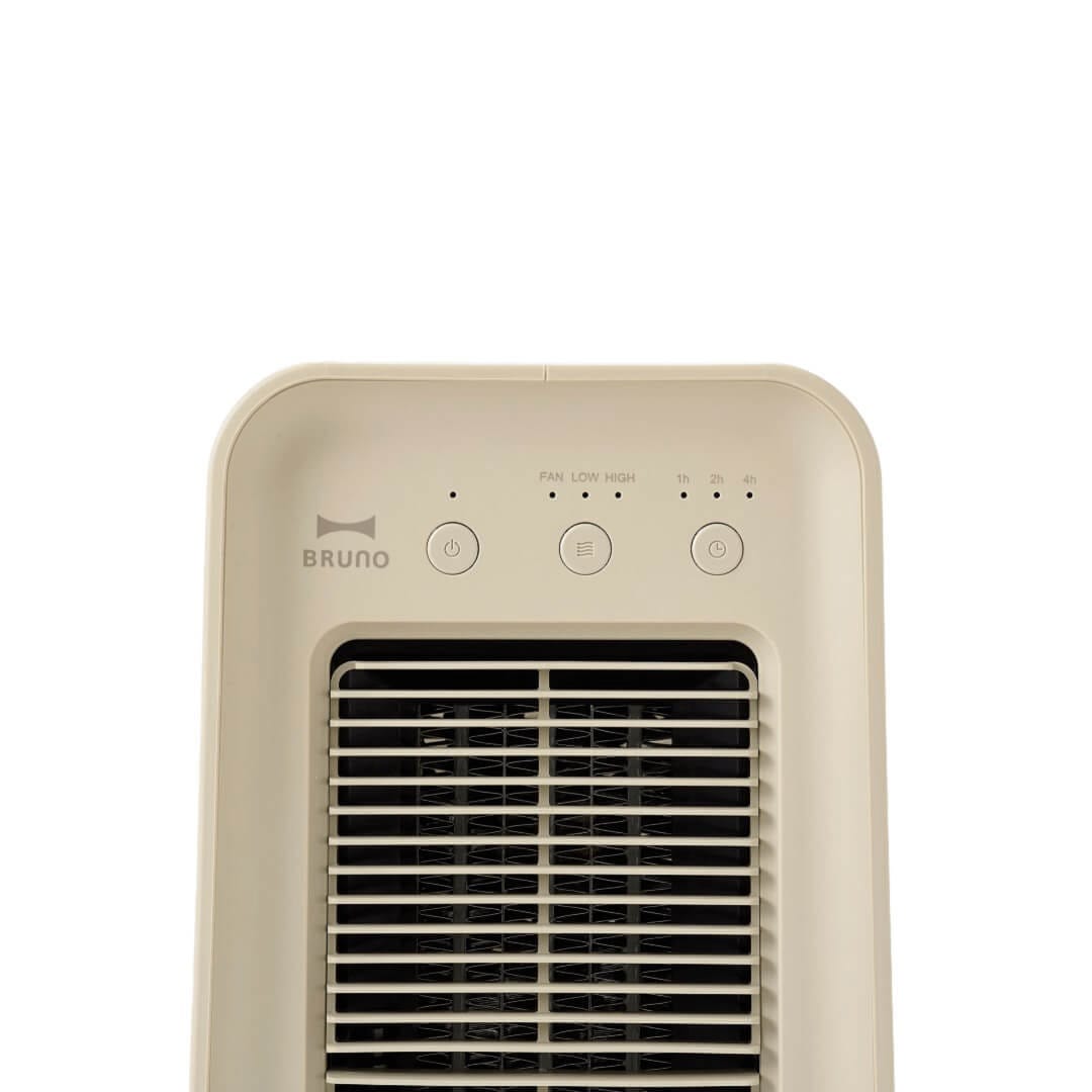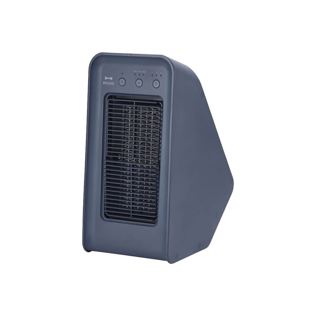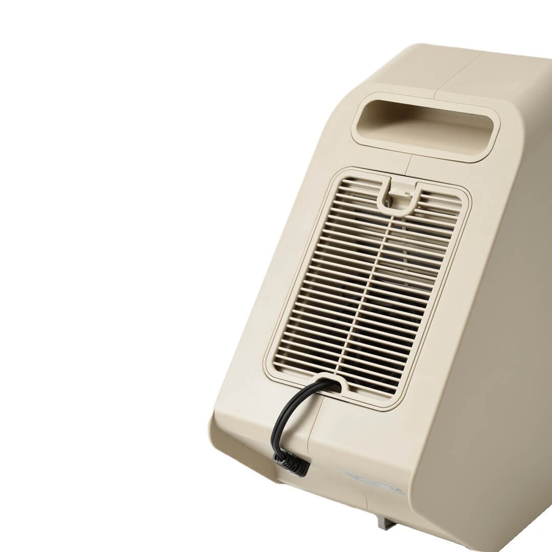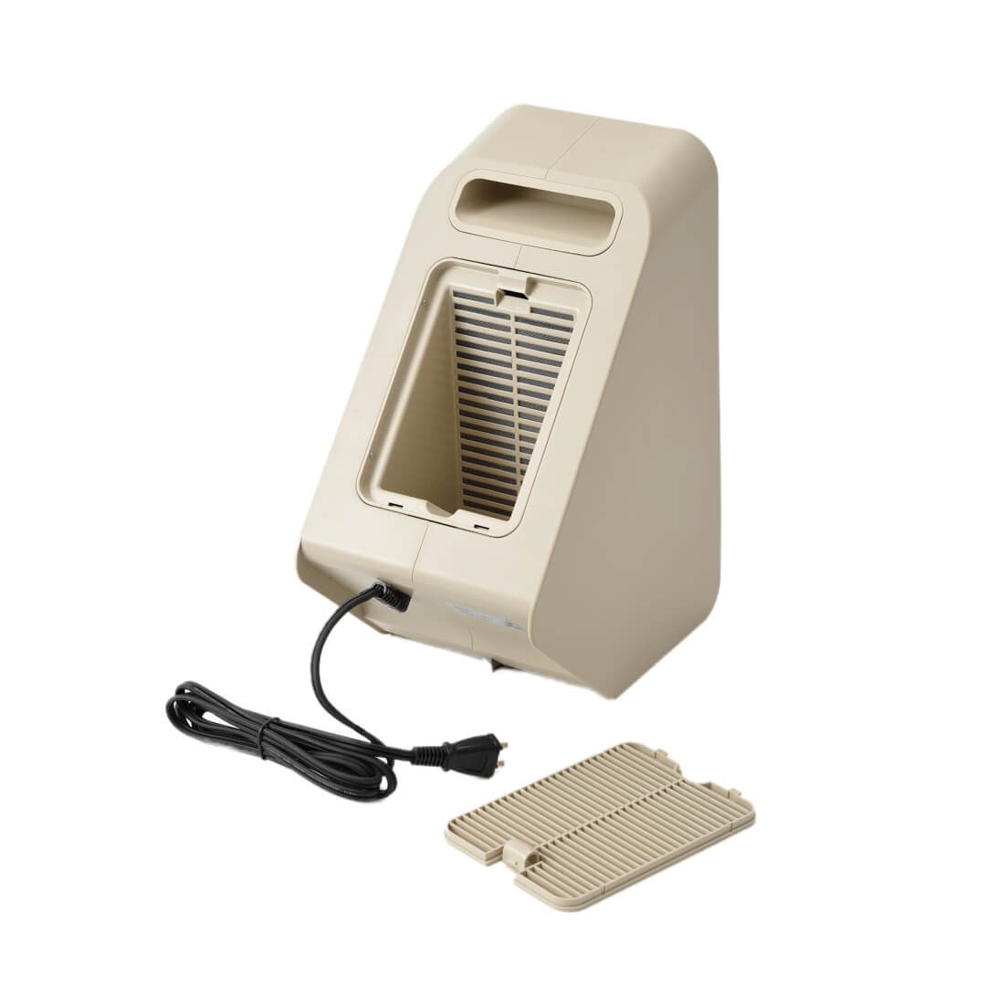 好みの角度と温度で使い分けるファンヒーター 2方向に角度調整可能な、送風機能付きファンヒーターです。スイッチをオンにすると弱・強の温風がすぐ出る1200Wのパワフルさと、シーン別で角度が調整できるデザインが魅力です。リビング、キッチン、脱衣所、デスク下におすすめです。送風モードにすることでエアコンの循環や部屋干しにも活躍します。好みで選べる、2色のカラー展開 カラーは落ちつきのあるグレージュ、ネイビーの2色をご用意しました。シンプルなカラーなので、どんなインテリアにも合わせやすいカラーリングです。お部屋の雰囲気に合わせてお好みのカラーをお選びください。温めたい箇所で変えられる、2つの角度調整 本体を傾けるだけで、簡単に2通りの角度に変えられる独自のデザインです。通常向き(5度)はソファの近くやデスク下などで足元を温めたいときに最適です。上向き(45度)はキッチンや脱衣所で身体全体を温めたいときにぴったり。ガードは上下に可動するので、細かな向きの調整もできます。安心安全の高機能付き 1時間、2時間、4時間のタイマー設定や8時間の連続運転後も、自動で電源が切れる仕組みです。「転倒時オートオフ機能」や「温度過昇停止機能」も搭載しています。小さなお子様やペットがいるご家庭、消し忘れにも安心して使用できます。簡単に持ち運べる便利なハンドル 背面の上部にはくぼみがあるので、簡単に持ち運びができて便利です。くぼみの下にある吸気口カバーの内部には、電源コードを収納できるスペースがあります。保管時にはコンパクトにしまえるだけでなく、使う分の長さだけだしておける設計も魅力です。