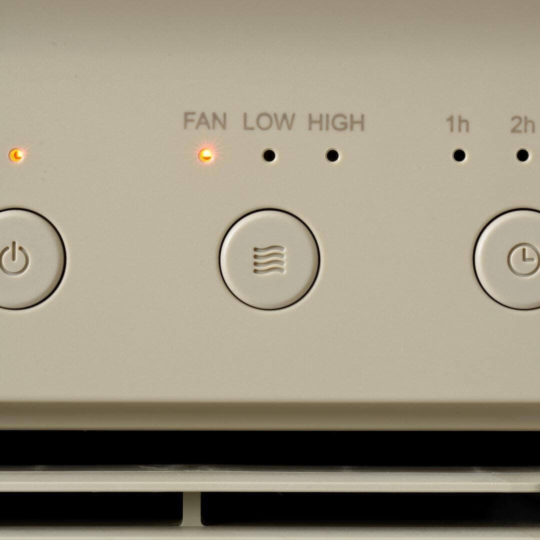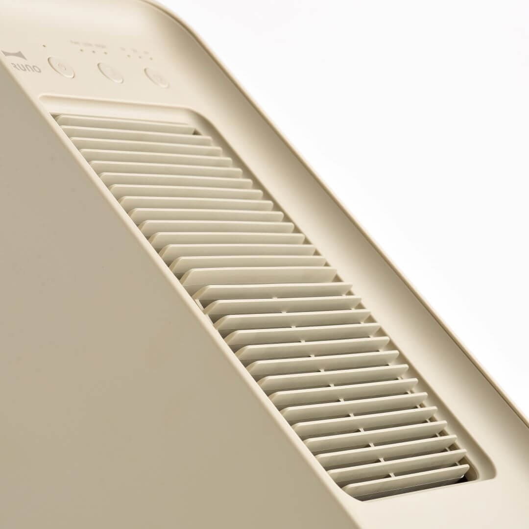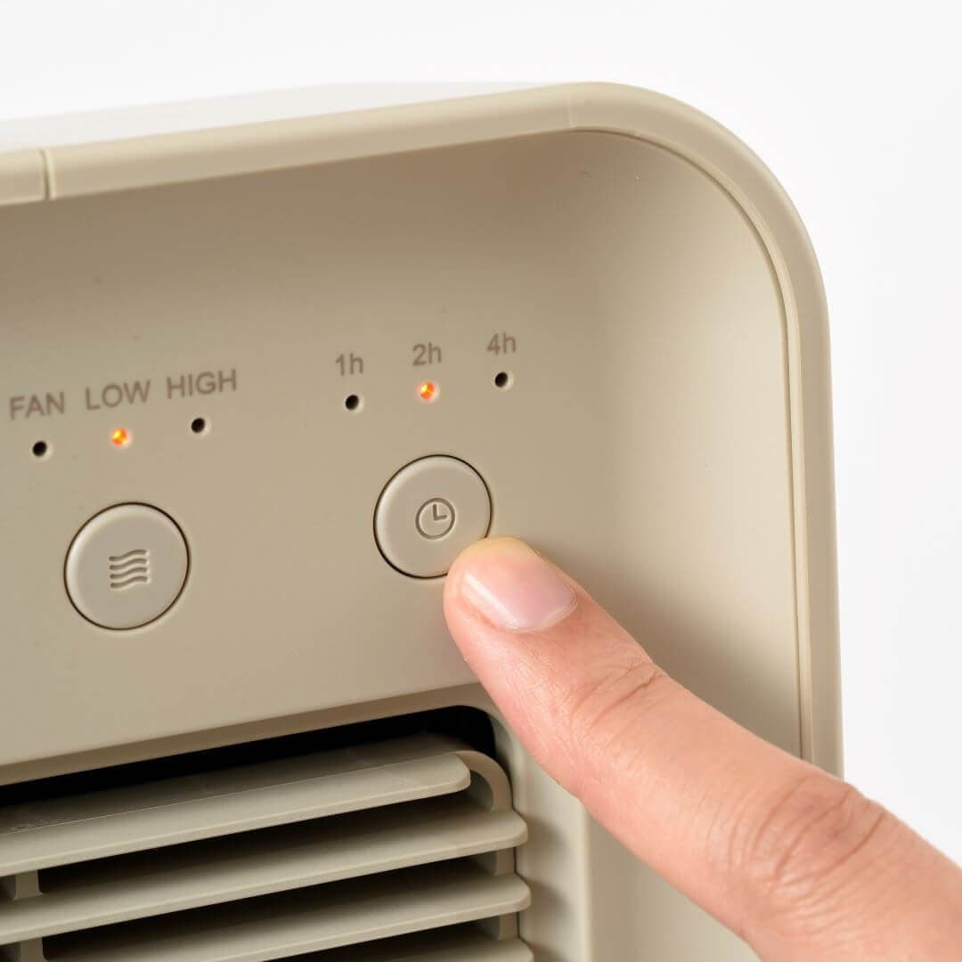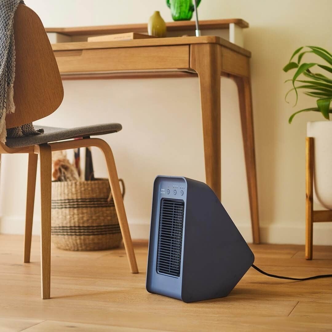 好みの角度と温度で使い分けるファンヒーター 2方向に角度調整可能な、送風機能付きファンヒーターです。スイッチをオンにすると弱・強の温風がすぐ出る1200Wのパワフルさと、シーン別で角度が調整できるデザインが魅力です。リビング、キッチン、脱衣所、デスク下におすすめです。送風モードにすることでエアコンの循環や部屋干しにも活躍します。好みで選べる、2色のカラー展開 カラーは落ちつきのあるグレージュ、ネイビーの2色をご用意しました。シンプルなカラーなので、どんなインテリアにも合わせやすいカラーリングです。お部屋の雰囲気に合わせてお好みのカラーをお選びください。温めたい箇所で変えられる、2つの角度調整 本体を傾けるだけで、簡単に2通りの角度に変えられる独自のデザインです。通常向き(5度)はソファの近くやデスク下などで足元を温めたいときに最適です。上向き(45度)はキッチンや脱衣所で身体全体を温めたいときにぴったり。ガードは上下に可動するので、細かな向きの調整もできます。安心安全の高機能付き 1時間、2時間、4時間のタイマー設定や8時間の連続運転後も、自動で電源が切れる仕組みです。「転倒時オートオフ機能」や「温度過昇停止機能」も搭載しています。小さなお子様やペットがいるご家庭、消し忘れにも安心して使用できます。簡単に持ち運べる便利なハンドル 背面の上部にはくぼみがあるので、簡単に持ち運びができて便利です。くぼみの下にある吸気口カバーの内部には、電源コードを収納できるスペースがあります。保管時にはコンパクトにしまえるだけでなく、使う分の長さだけだしておける設計も魅力です。
