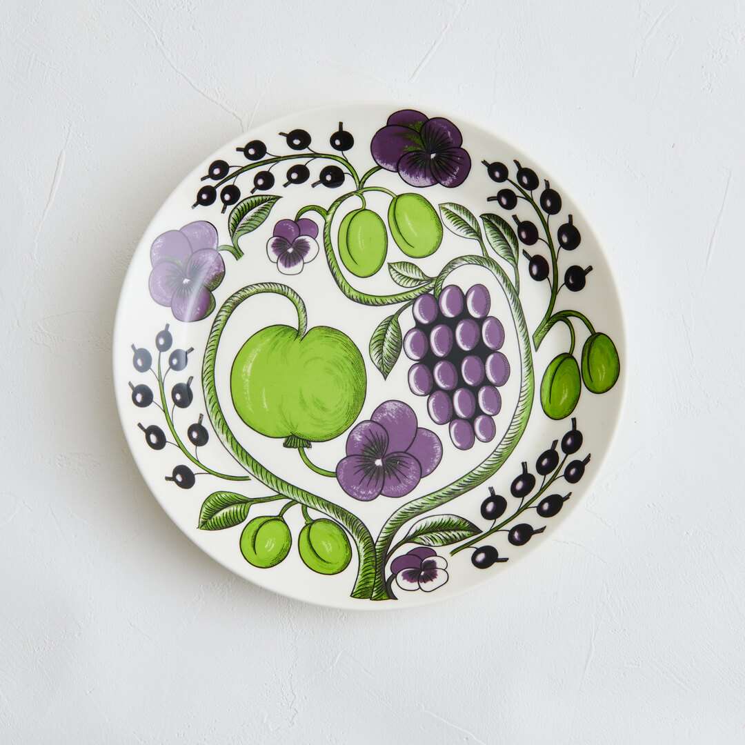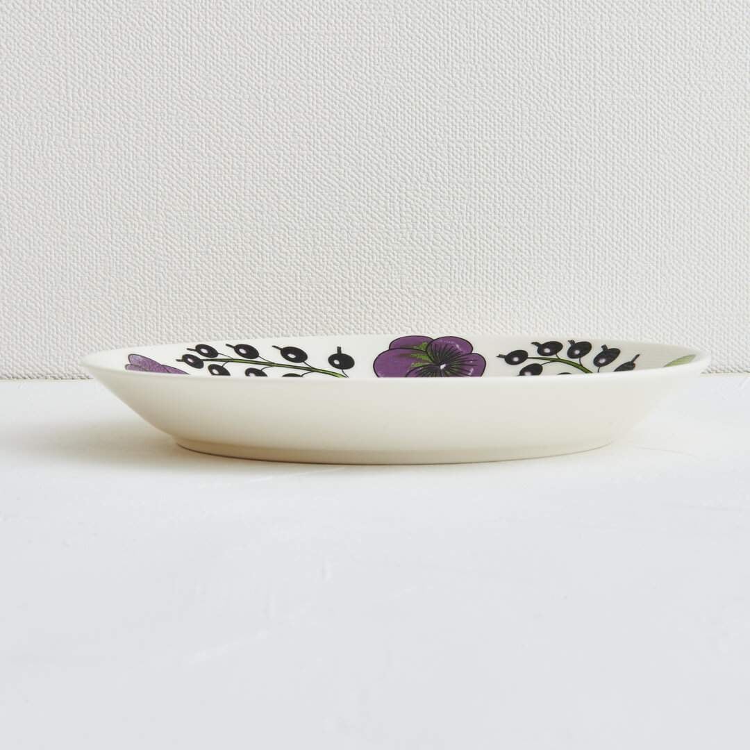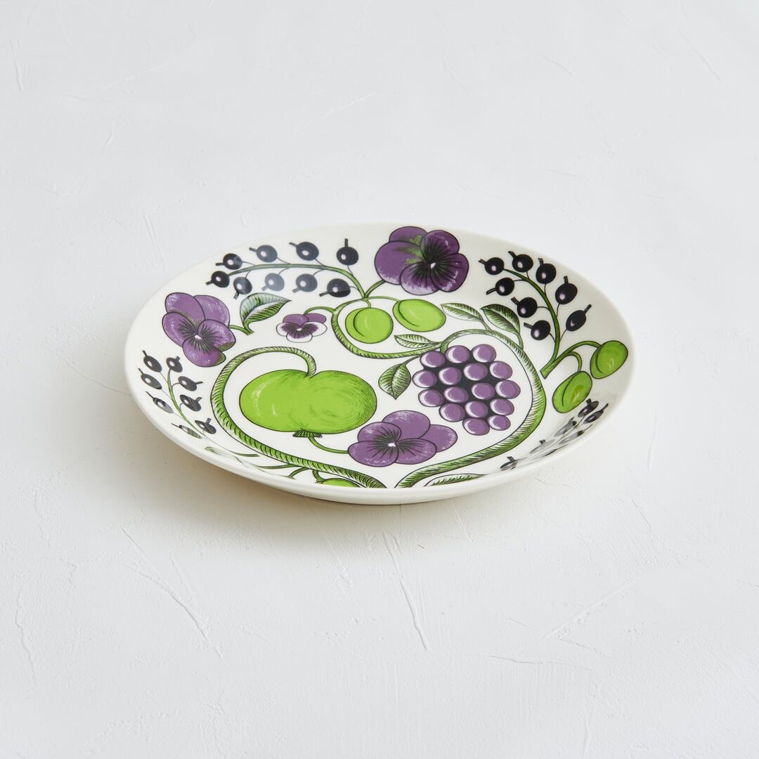 アラビアの代表作『パラティッシ』シリーズ 1969年から愛され続けているアラビアの『パラティッシ』シリーズ。このシリーズはフィンランドの陶芸界で最も知られる人物のひとり、ビルガー・カイピアイネンによる名作です。パラティッシという意味はフィンランド語で「楽園」を意味するように、フルーツや花々と鮮やかな色彩が魅惑的なデザインが特徴的です。パラティッシの器をひとつ取り入れるだけで、日常のテーブルが華やかな空気に包まれます。メインのおかずからパスタ、朝食のプレートにおすすめな21cm こちらのプレート21cmは、朝食のトースト、パスタ、メインのおかずにもおすすめなサイズです。フチが立ち上がっているので、サラダを盛り付けたり、汁気のある煮込み料理の盛り付けにも便利です。電子レンジ、オーブン、食洗機、冷凍保存にも対応しています。カラーデザインは全部で3種類 定番のイエローに加え、1970年に登場したブラックと2012年に特別カラーで登場したパープルの3種類から選べるパラティッシ。カラーでまとめたり色違いを組み合わせてギフトにもおすすめです。※他のカラーは別ページより購入が可能です。