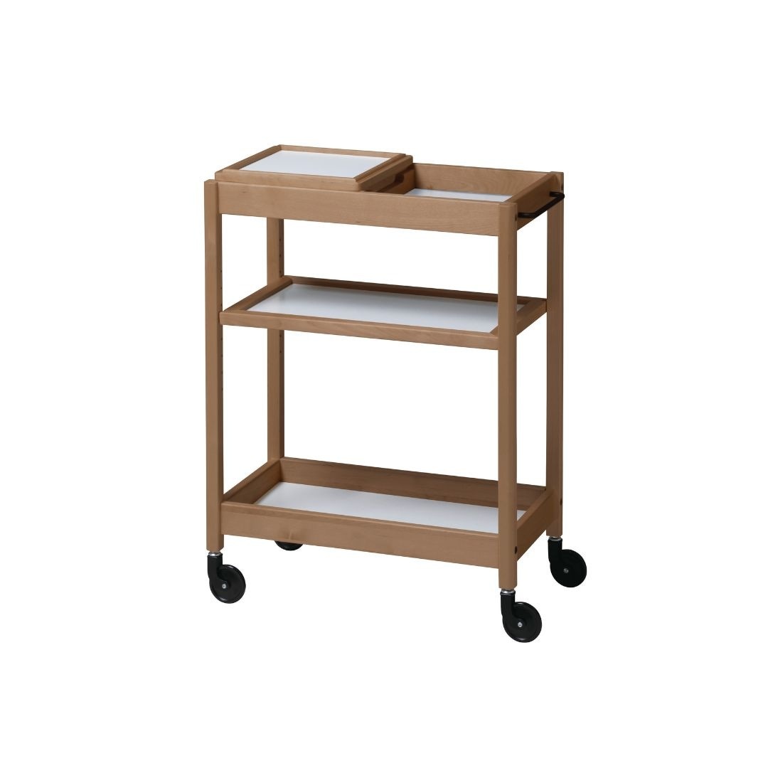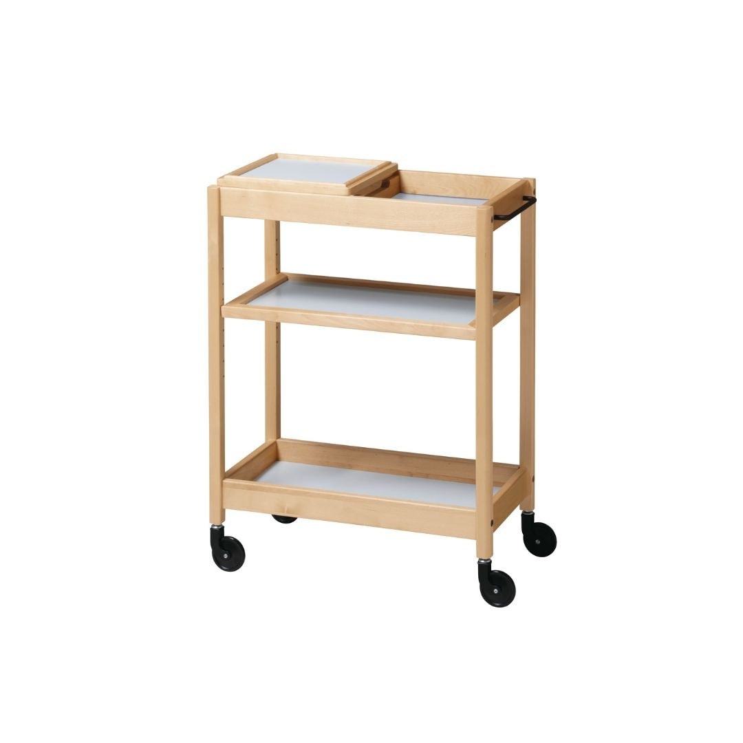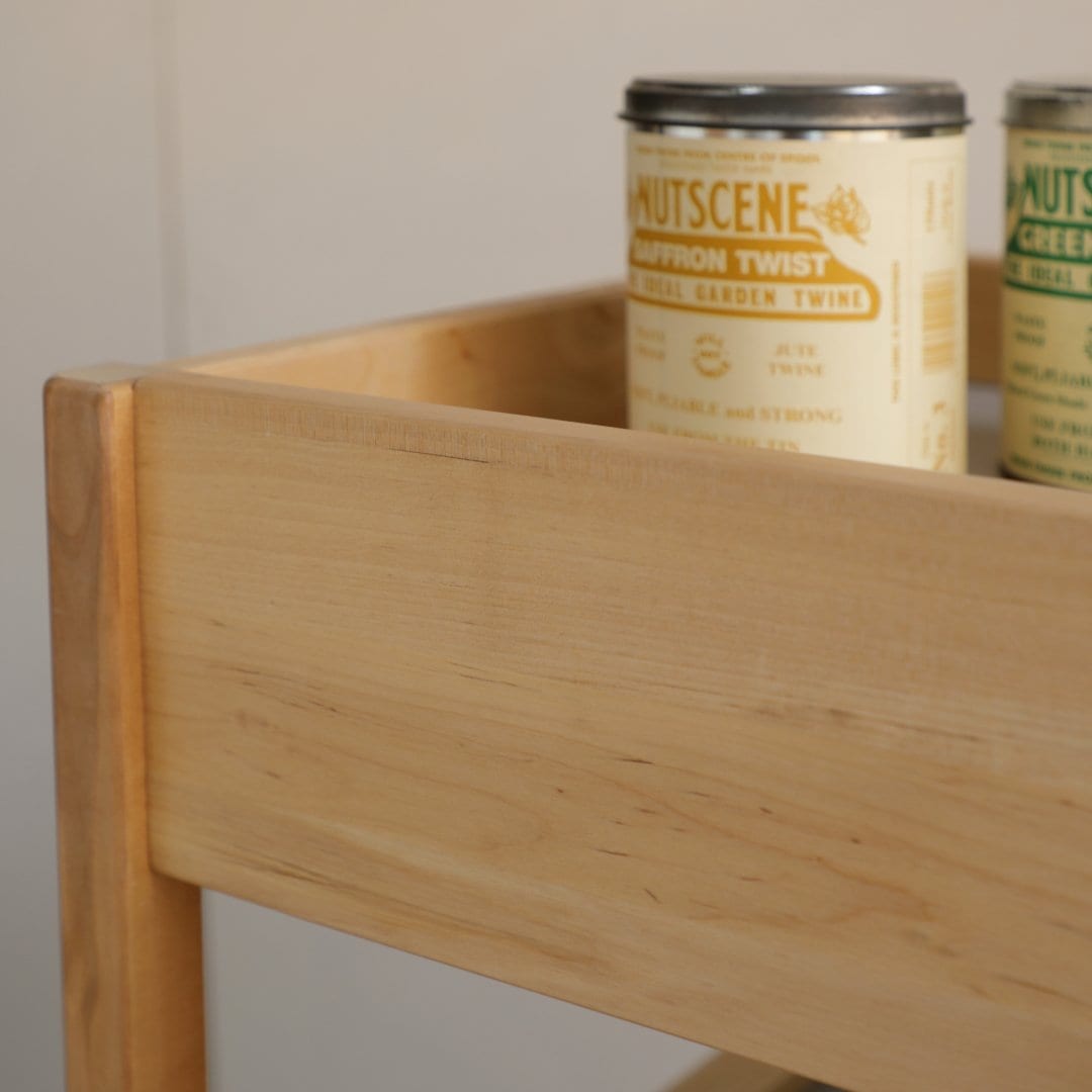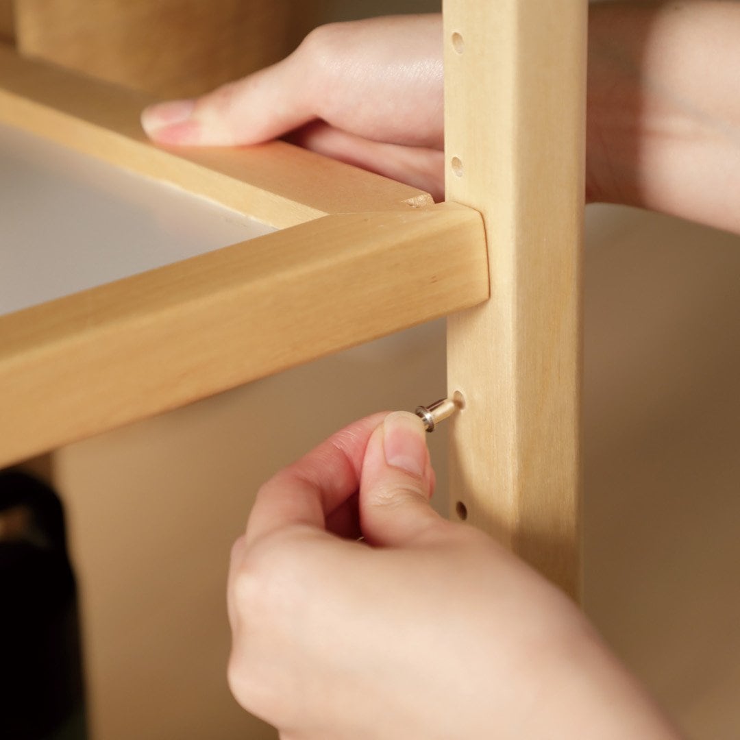 トレーが棚板代わりにもなるキッチンワゴン棚板三段タイプの木製キッチンワゴンです。一段目には半分しか棚板がないので、ワインなど背の高いボトルを置くのにぴったり。一段目のフレームが柵になり、移動時の衝撃でボトルが落下するのを防ぎます。トレーは一段目の左右どちらにでも取り付けられます。上質な空間を演出できる、2色のカラーバリエーションカラーは、天板がホワイト×天然木が白っぽい『ナチュラル』、天板がブラック×天然木が落ち着いた色味の『ブラウン』をご用意しました。キッチンやリビングの雰囲気に合わせてお好みのカラーをお選びください。ずっと触れていたくなる温もりあるワゴン枠手触りの良いさらっとした天然木のワゴンはどんなインテリアのお部屋にもよくなじみ、空間にあたたかみをプラスします。ハンドルはキャスターと同じブラックカラーで統一感も◎。キャスターにはストッパーが付いているので、その場で動かないようにもしておけて安心です。雑然としがちな小物はワゴンへリモコンや雑誌、観葉植物などリビング小物の収納スペースとしてキッチン以外に常駐させるのもOK。二段目は可動式でお好みの高さに調整してご使用いただけます。一段目の棚板がない部分を利用して物を置く際には高めの位置に、キャニスターなど食品のストックを収納するなら低めの位置など。ティーブレイクにはお茶とお供をワゴンに乗せてキッチンでお茶の用意をしたらそのままコロコロキャスターを転がしてリビングへ。ドリンクが乗ったトレーをテーブルに置き、ワゴンはソファ横につけてブレイクタイム。ワゴンの下段には作業中の編み物や、読みかけの本を置いて家事の合間に自分時間を満喫できます。