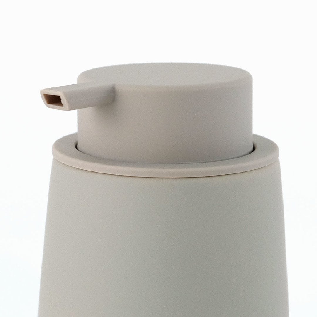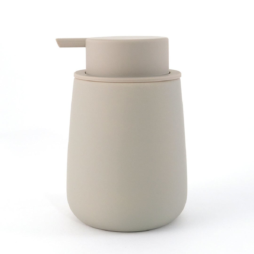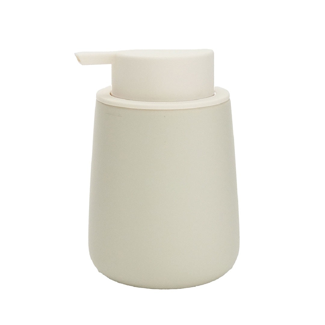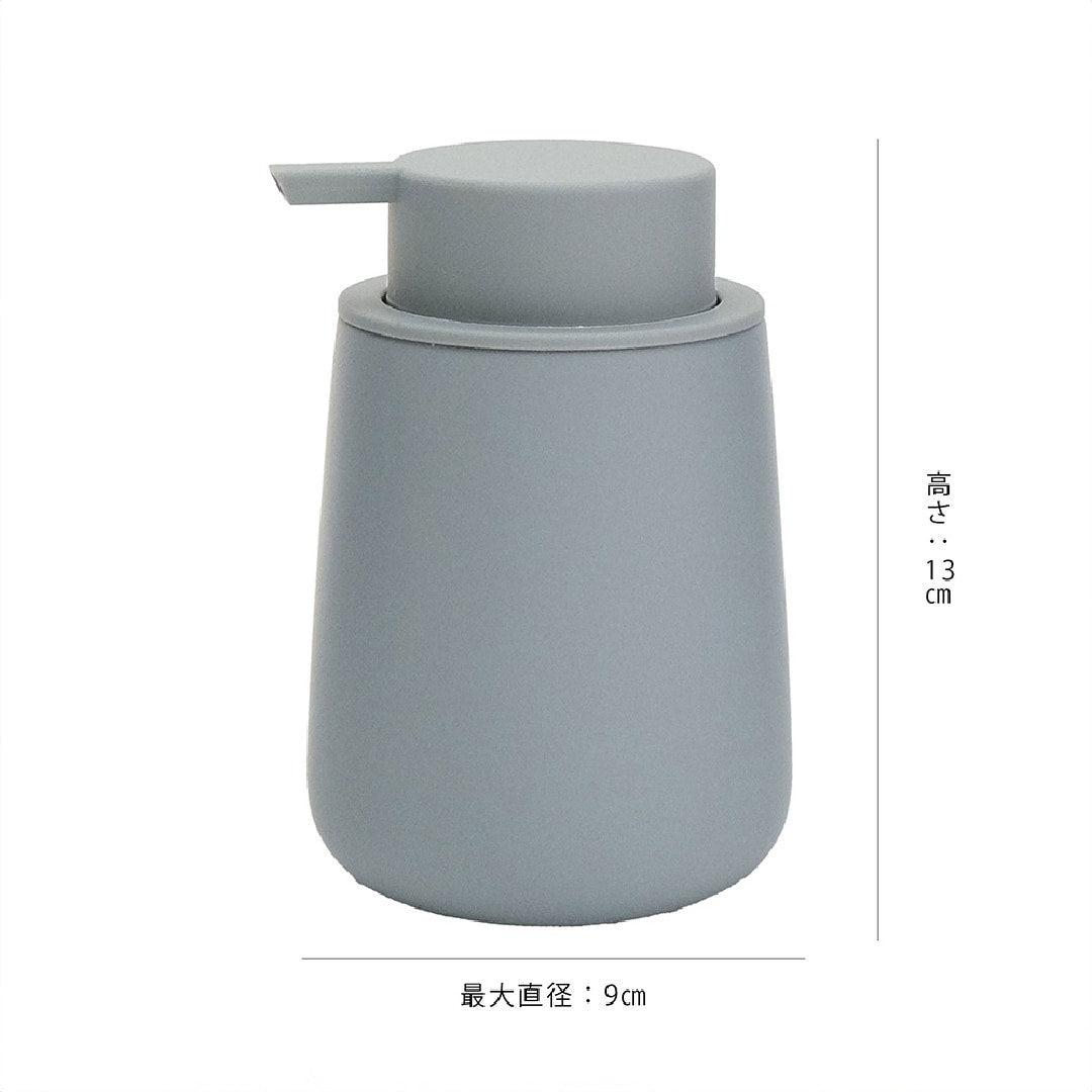 マットな質感が上品なディスペンサー陶器にラバーコーティングが施され、ポテッとしたフォルムが可愛らしいソープディスペンサーです。陶器にラバーコーティングを施すことで、クッション性が向上し表面を保護してくれています。これによって衝撃や振動に強くなり、割れや欠けを防ぐことができるんです!インテリアに馴染む、豊富なカラー展開カラーは、「ベージュ」「グレー」「アイボリー」「ディープグリーン」「グリーン」「ピンク」の6色からお選びいただけます。どんな空間にもマッチする、やわらかなくすみカラーが魅力です。詰め替えしやすく、プッシュもしやすいキャップの面積が広く、詰め替えがしやすくなっておりプッシュしやすいので、大人からお子様まで家族みんなが使いやすいデザインです。